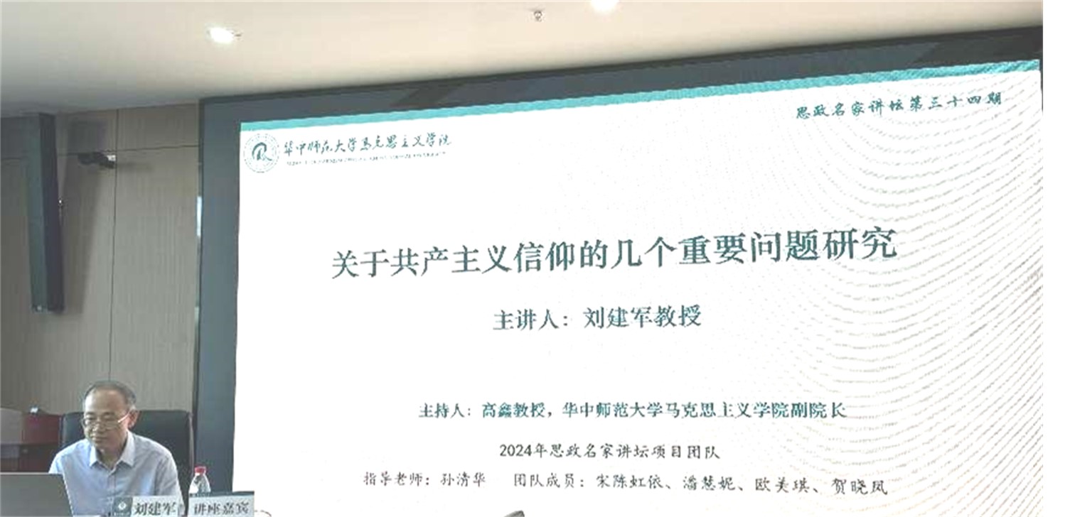 马克思主义学院讯(通讯员 欧美琪)2024年9月29日,由华中师范大学马克思主义学院主办的第三十四期“思政名家讲坛”在文科科研楼北楼407会议室顺利举行。本次讲座特邀中国人民大学马克思主义学院二级教授、博士生导师刘建军教授主讲,主题为“关于共产主义信仰的几个重要问题研究”。会议由华中师范大学马克思主义学院副院长高鑫教授主持。