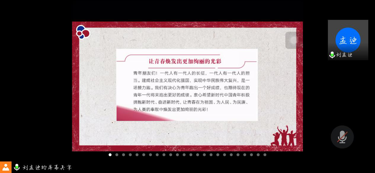 马克思主义学院讯(通讯员 李林萱 石佳鑫)5月5日晚,马克思主义学院2018级本科团总支“传承五四精神 绽放战疫青春”五四青年节主题团日活动于线上成功举行。辅导员陈陈瑾出席此次活动。