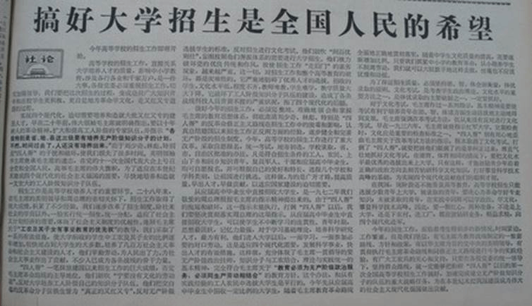 实践队成员在本次实践活动翻阅了1977年10月21日的《人民日报》,仔细阅读电子版社论《搞好大学生招生是全国人民的希望》以及电子书籍《印象1977》。同时,在翻阅相关资料的过程中,实践队成员了解到为恢复高考,党召开了三次会议:第一次会议为“第一次全国高校招生工作会议”,其会议内容为对“文革”中实行的“群众推荐”招生制度以及是否“恢复高考招生制度”展开讨论;第二次会议为“科学和教育座谈会”,旨在对中国的教育现状进行调查;第三次会议为“第二次全国高校招生工作会议”,这次会议决定恢复高考制度并对当时高校招生制度进行改革。三次会议结束后,1977年10月21日,《人民日报》发表社论:《搞好大学招生是全国人民的希望》,正式宣布恢复高校招生统一考试制度。