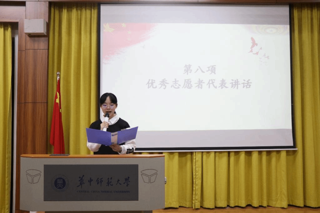 随后,优秀志愿者代表史可佳发言。她提出,志愿活动是志愿者无偿付出自己的时间和精力,为促进社会和谐进步而开展的服务活动。在运动会志愿活动中,她真切感受到了马院团结合作、乐于奉献的氛围及集体荣誉感。