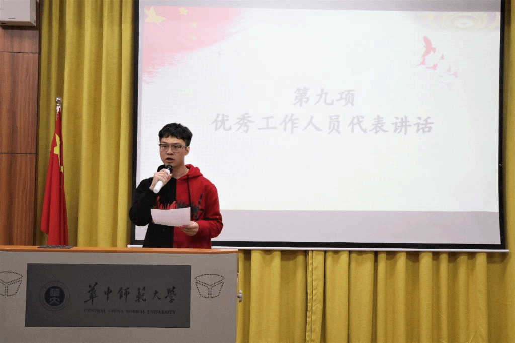 最后,余楚权作为优秀工作人员代表发言。他表示,运动会取得的优异成绩是马院每一位同学辛勤付出的结果,“校运会期间的工作给予了我锻炼和提升自我的机会,也让我切实体会到‘不忘初心,牢记使命’不仅仅是一句口号,更是一份责任的担当和信念的传承。”