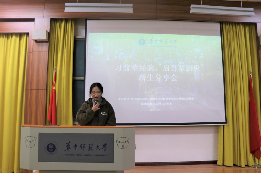马克思主义学院讯(记者 袁铖;摄影 谢泽婷)11月29日下午,马克思主义学院“习前辈经验,启吾辈新思”新生分享会于一号楼1101教室顺利举行。本次新生分享会由马克思主义学院2017级本科生王银凤、潘越主讲,马克思主义学院团委学生会师范生训测部贺彭博阳主持。我院2019级、2020级本科生参会。