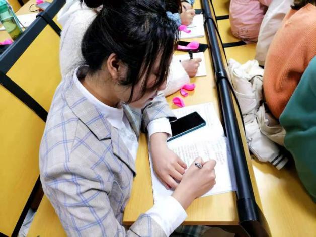 活动伊始,主持人王雅菁同学介绍节日背景以及活动安排:女生们将自己的心愿写在便利贴上,将便利贴塞进气球里;男孩通过投骰子的方式决定要戳的气球的个数,并实现对应气球里的女生的心愿。