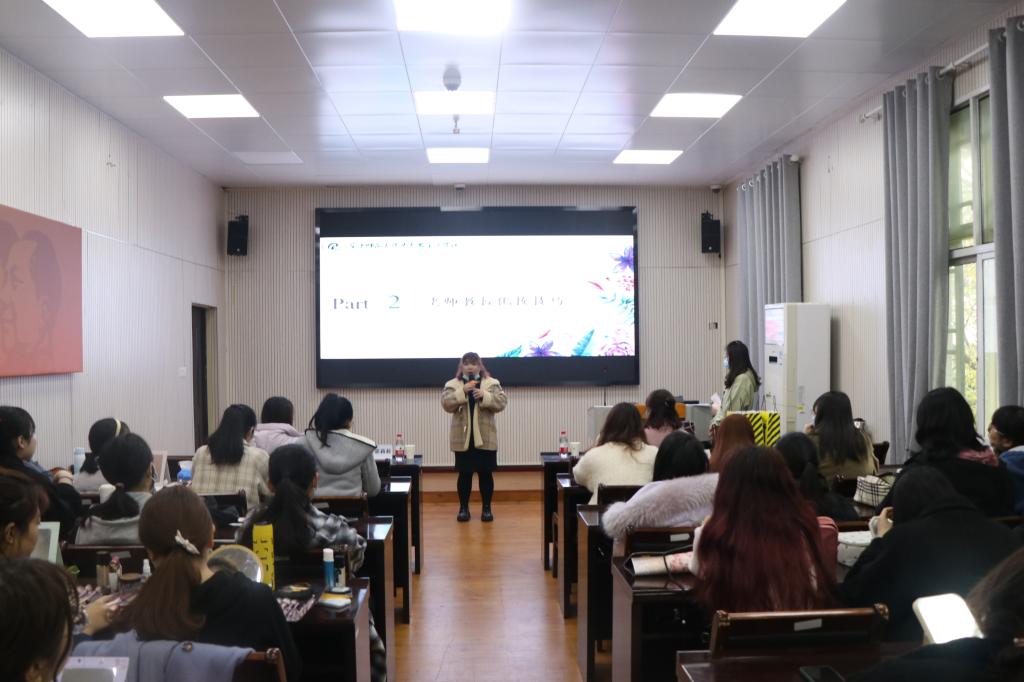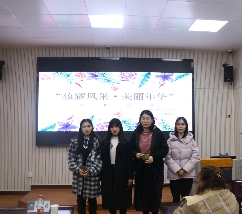 马克思主义学院讯(记者 永忠旺加;摄影 刘新武)为迎接妇女节到来,帮助学生增长专业美容知识,提升形象气质和审美品位,马克思主义学院团委学生会于3月5日在一号楼三楼学术报告厅举办“妆耀风采,美丽年华”美妆活动。本次活动邀请专业化妆师陈莎莎和杨婷作为主讲人,马克思主义学院党委副书记邵莉莉、本科生辅导员任奥博出席本次活动。活动由办公室副主任赵静主持。
