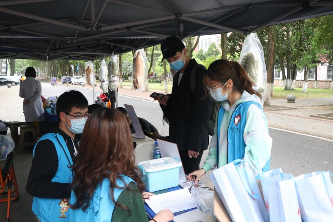 马克思主义学院讯(通讯员 谢泽婷;摄影 袁铖)4月18日,“无偿献血思红源,献礼建党百周年”献血活动在文华公书林前举行,活动由我院青年志愿者协会联合华中师范大学青年志愿者协会组织举办。