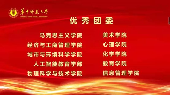 马克思主义学院讯(通讯员 孙福泽)4月30日,为表彰一批在共青团工作中表现突出的先进集体和先进个人,由共青团华中师范大学委员会主办的庆祝建党100周年暨建团99周年表彰大会在科学会堂一楼报告厅举行。此次会议旨在激励团委各级组织及广大青年勇于担当,不忘初心,同做时代引路人,共做新时代的建设者和接班人。校党委书记赵凌云,校长郝芳华等学校领导出席活动。