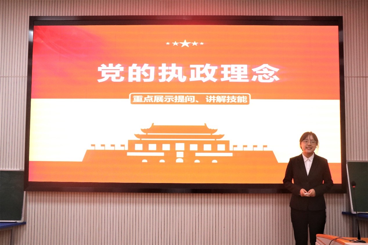 07号选手张莉莉以歌曲《十八洞飞出幸福歌》开场,让学生在美妙歌声中感受十八洞村翻天覆地的发展,感悟十八洞村党员干部的坚定信念,学习“党的执政理念”。
