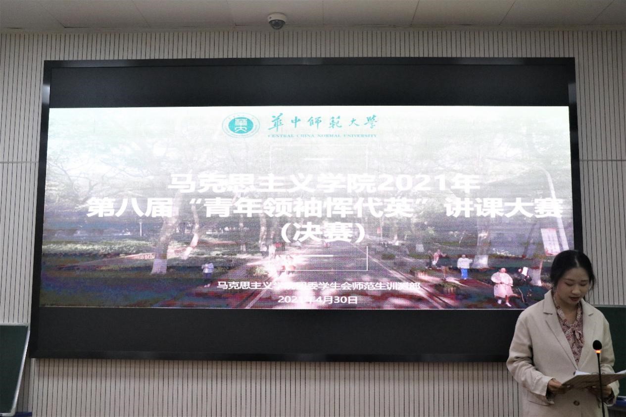 马克思主义学院讯(通讯员 谢泽婷;摄影 刘新武)4月30日,由马克思主义学院师范生训测部举办的第八届“青年领袖恽代英”讲课大赛决赛在一号楼3楼报告厅举行。马克思主义学院党委副书记邵莉莉、思想政治课教学论教研室胡田庚教授、高鑫副教授、周兴会副教授出席并担任此次决赛评委。比赛由贺彭博阳主持。