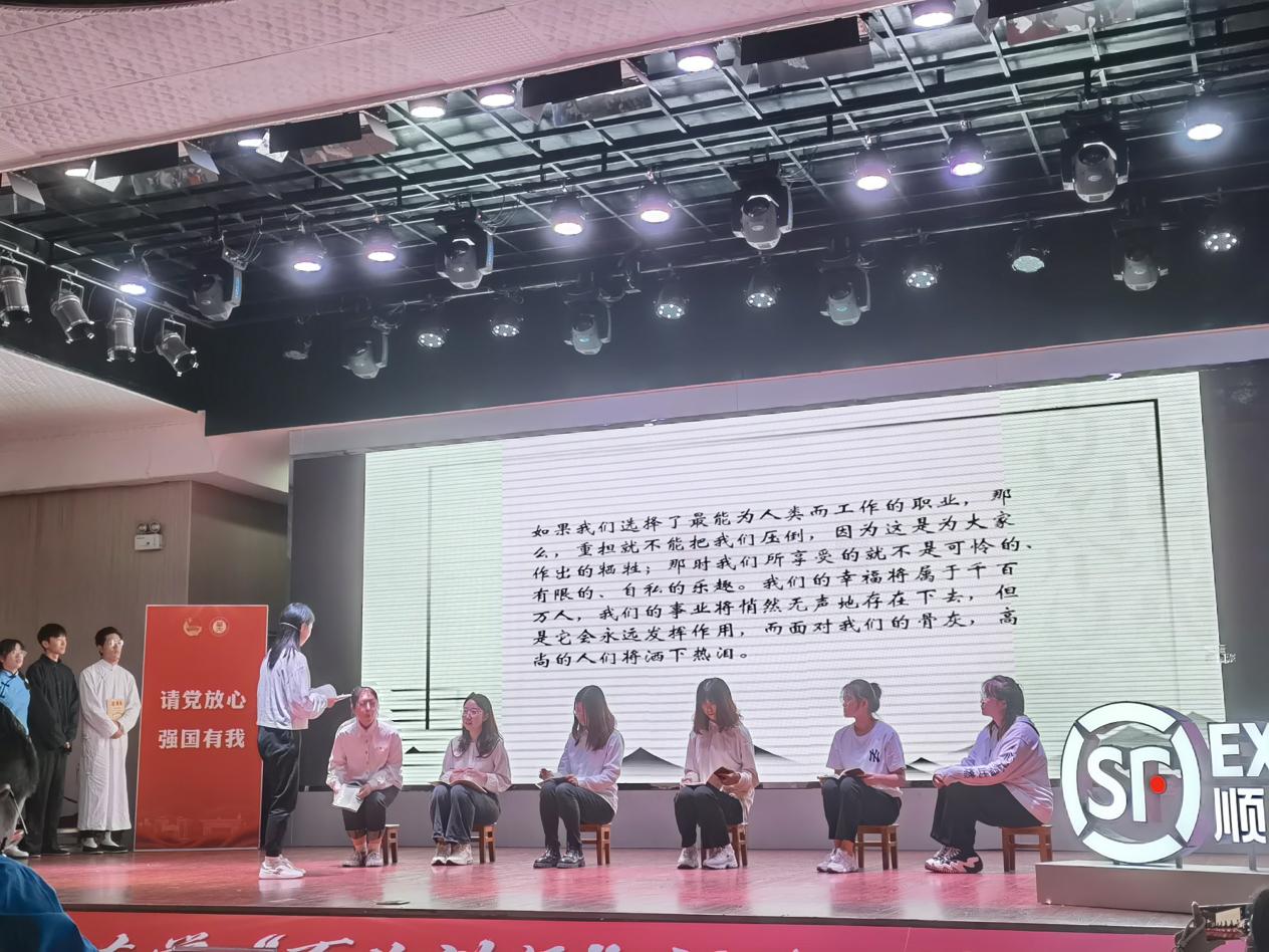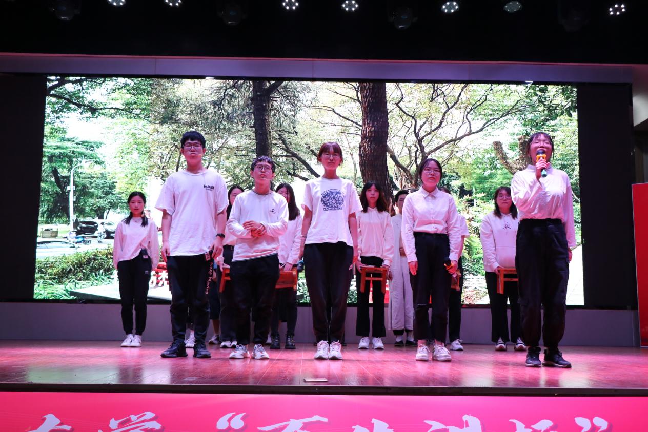 2003团支部以“弦歌不辍,星火相传”为主题,分三个部分演绎了薪火相传的恽代英精神。2003团支部重现了那个黑暗年代里,恽代英因坚持革命、启发青年而遭受反动派迫害的经历,回顾了恽代英在狱中的铮铮誓言,让现场观众切身体会到恽代英的风骨与气节。随后,场景切换到马克思主义学院学子的日常课堂。课堂上,同学们正认真学习马克思的《青年在选择职业中的考虑》一文,从文章中体悟马克思为人类解放而奋斗的初心。告别课堂,2003团支部带着大家畅想2035年的自己。同学们分享自己的愿景,或想成为高中思政教师,或想成为大学思政老师,或想成为服务人民的基层干部……同学们勇敢地表达出为祖国育才、为人民服务的愿望,以实际行动传承前辈的精神,展现新时代青年的风貌。