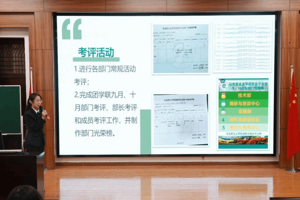 此次全体大会上,团委学生会新成员们回顾了团干学习、团学工作成果并对未来的团学工作进行了规划。“大鹏一日同风起,扶摇直上九万里”,今后马院团委学生会将继续砥砺奋进、睿智笃行,全力打造具有马克思主义学院特色的团学品牌。