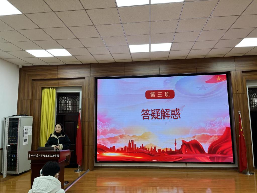 会议第三项,答疑解惑。研会主席团成员李佳玥、谭琪、瞿诗蓉和团总支书记曾林康、韩续冰分别对成员们关注的例会问题、大型活动申报问题和换届等问题作出了细致解答。