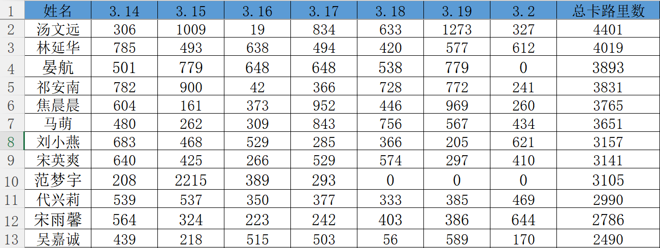本次活动同学们热情高涨、踊跃报名、积极参与,一周的时间内线上打卡群里火热一片,在寒冷的天气中,释放生命活力。最终有十二位同学名列前茅,获得了精美的奖品。