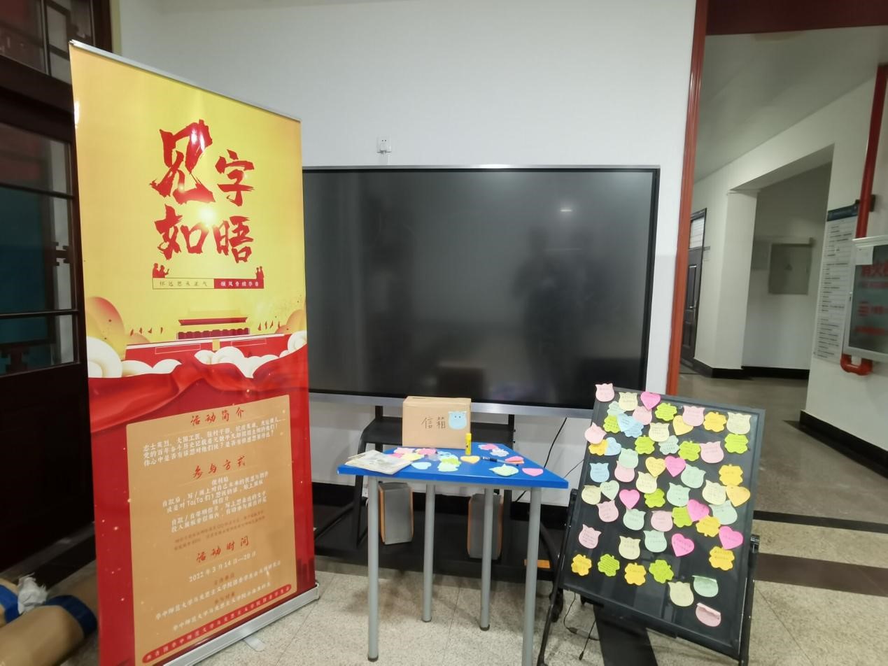 马克思主义学院讯(通讯员 刘晋玮;摄影 黄天锡)3月16日至3月20日,由马克思主义学院团委学生会马列研究会举办的“见字如晤——怀远思承正气,颂风骨续华章”主题活动在1号楼顺利举行。本次活动分为“缅怀历史”和“展望未来”两个板块,面向马克思主义学院全体本科生开展。