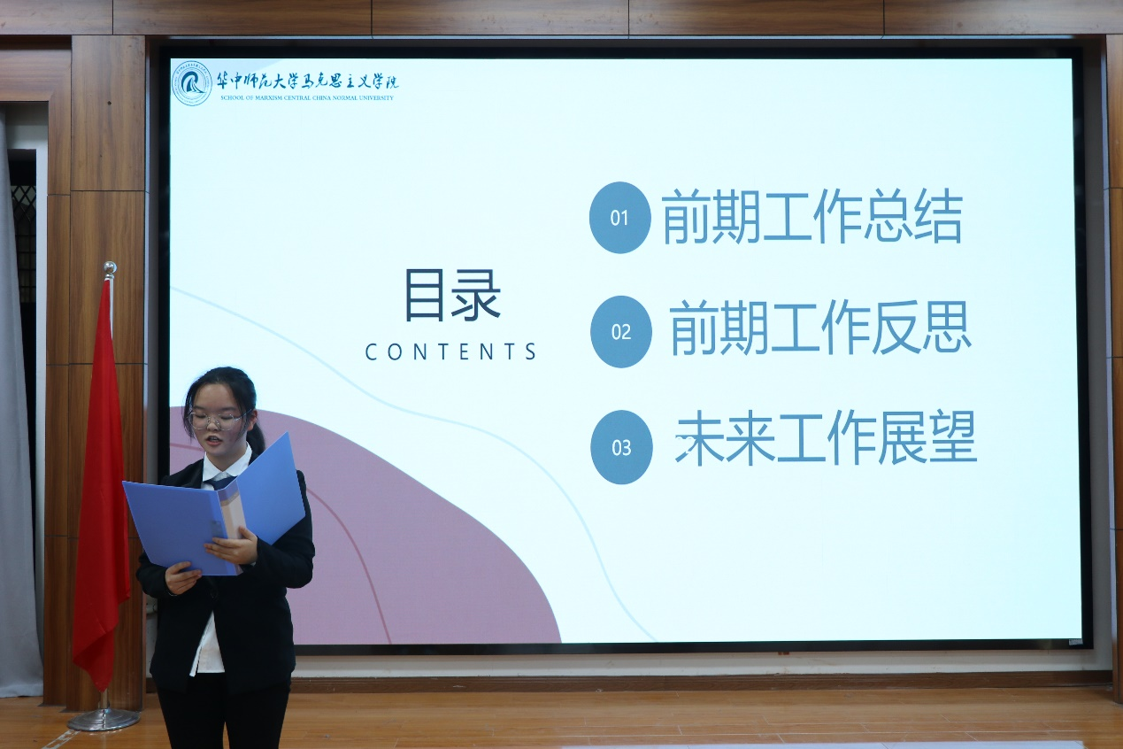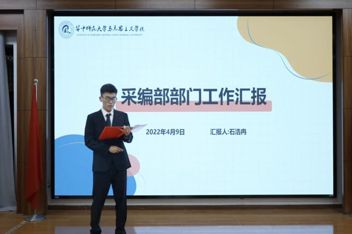 会议上,各部门深入剖析部门工作,从前期工作总结、近期工作内容、未来工作规划三方面进行工作汇报。其中,采编部成员石浩冉从官Q运营、新闻报道以及活动投稿三个方面做出部门工作总结,展现了马院团学宣传的方阵力量。此外,采编部进一步提出优化特色板块运营、整理工作亮点、增强宣传吸引力的改进目标,致力于形成独特的部门文化,为马院团学打造宣传“金话筒”。