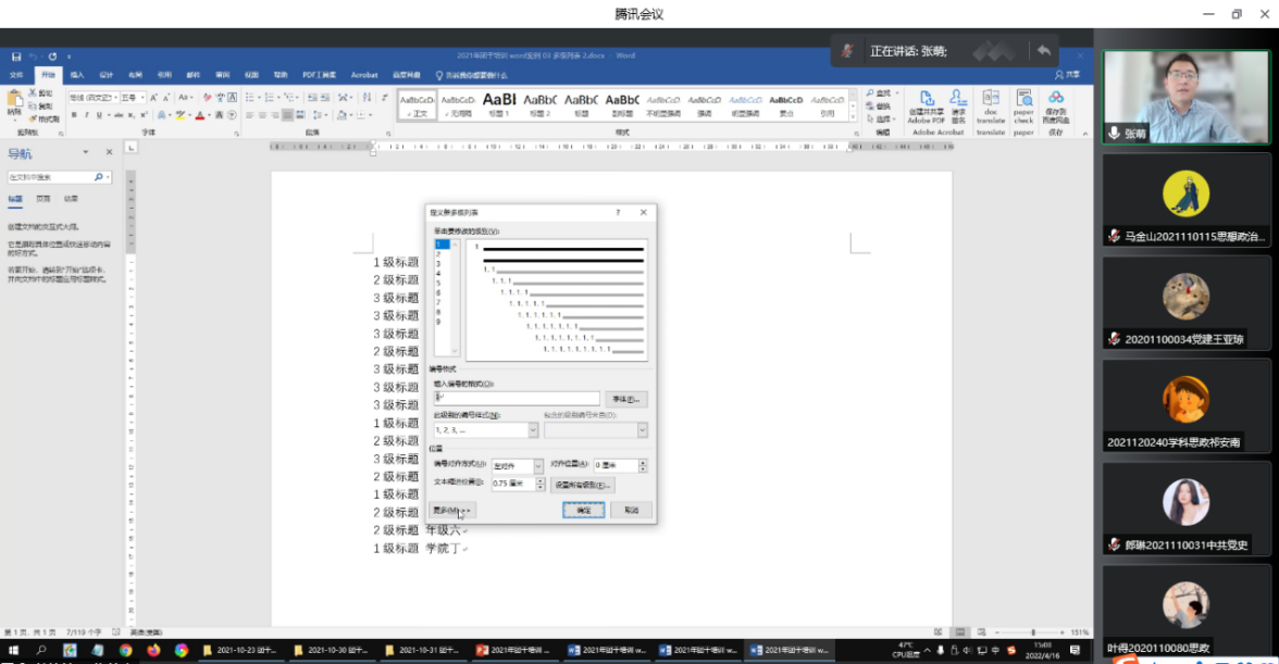马克思主义学院讯(通讯员 马金山)4月16日下午,“研究生办公软件培训活动”在腾讯会议进行。此次活动由马院研究生会办公室主办,活动邀请了教育学院2018级本科生辅导员、小椒鱼融媒体中心指导老师张萌作为主讲老师,由研究生会办公室干事马金山主持。2020级、2021级部分硕士研究生参加了本次培训。