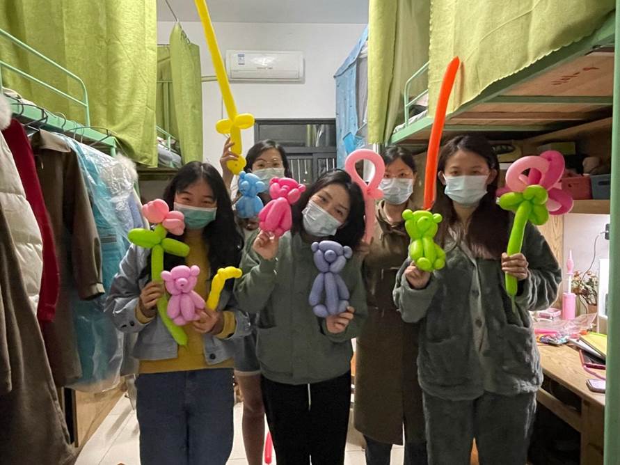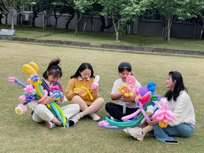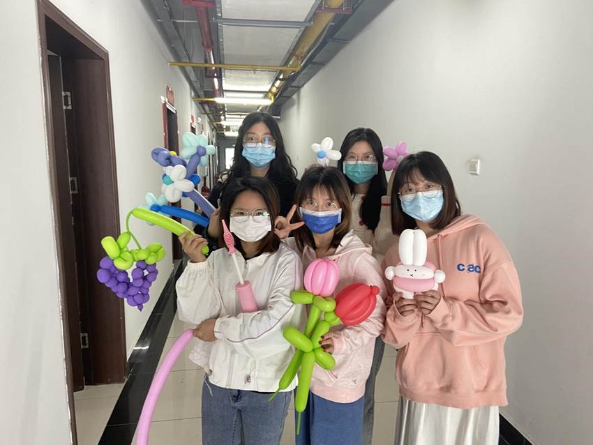 此次活动以“组队DIY”的形式进行,由活动参与者自行组成4-6人的团队,以团队为单位向各学院活动主办方领取活动材料,并自行设计创作,创作成果以小组队员和活动作品的合照呈现。活动前期,各学院采取线上通过微信、QQ平台发放通知,线下张贴海报相结合的方式进行宣传,各学院学生踊跃报名,积极参与。期间,各学院参与学生奇思妙想,创意十足,制作的各种气球成品风格多样,独具特色。在成果上传阶段,学院学生在活动群里认真分享活动照片及自身感想,气氛十分热烈。
