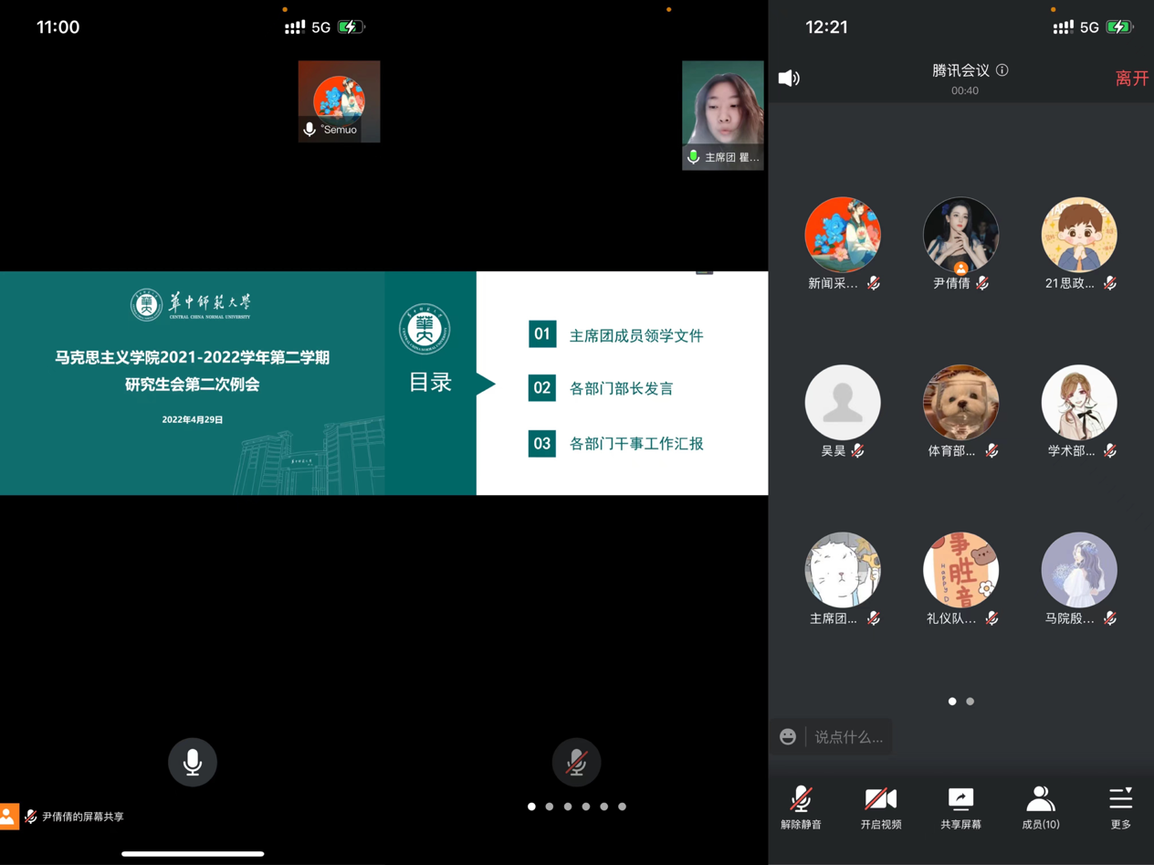 马克思主义学院讯(通讯员 关得华;摄影 关得华)4月28日中午,马克思主义学院在腾讯会议平台举办研究生会第二次全体例会,学院全体研究生会成员参与其中。