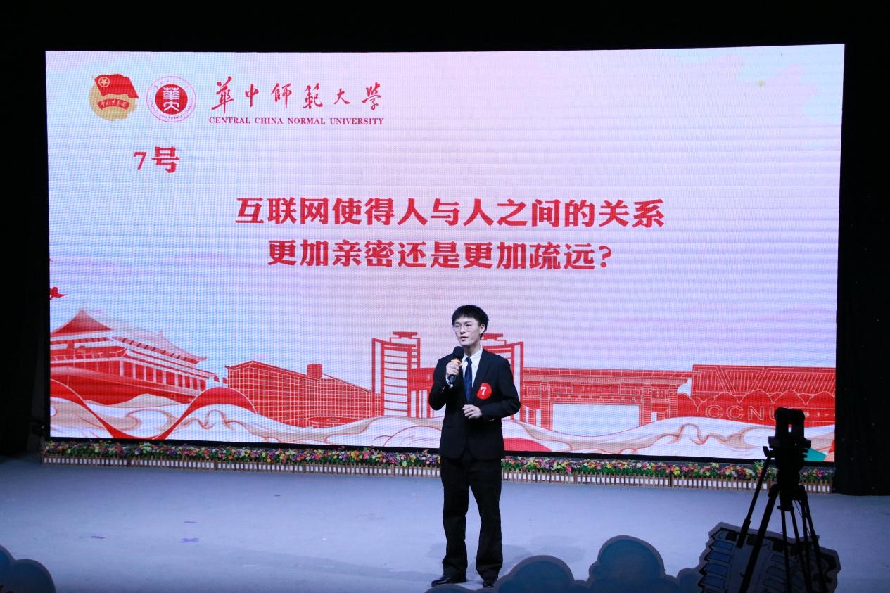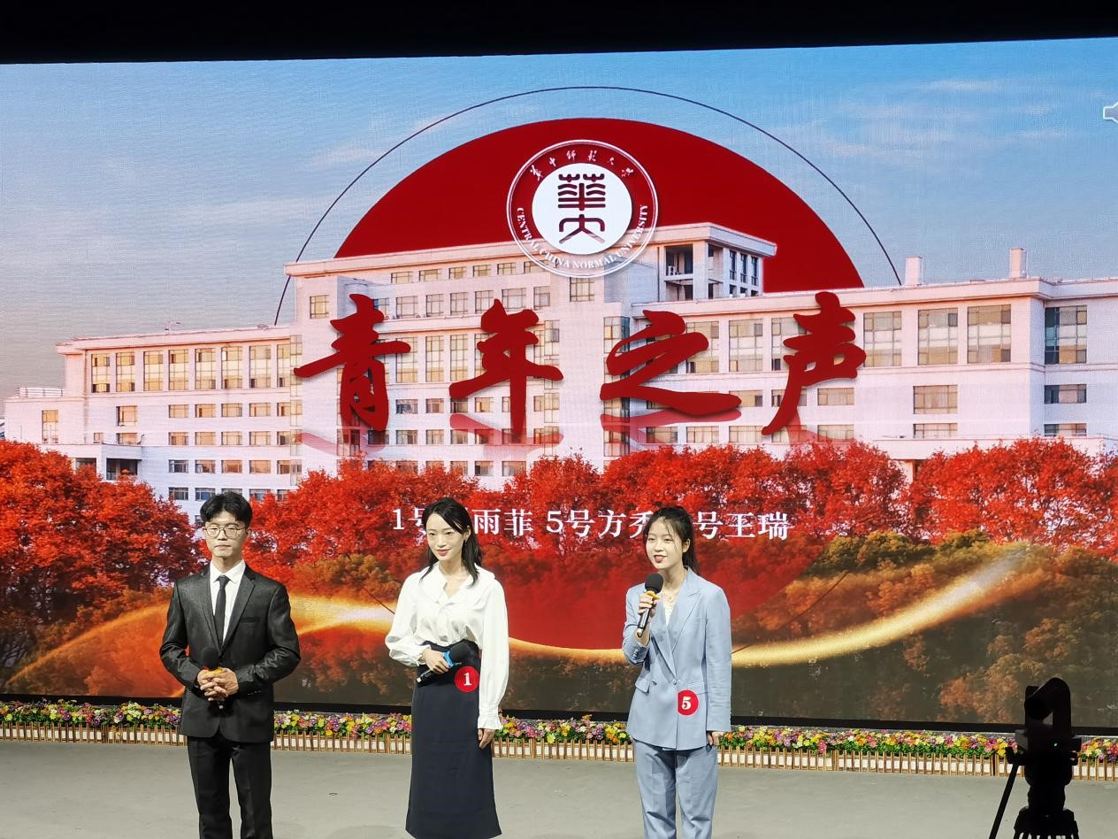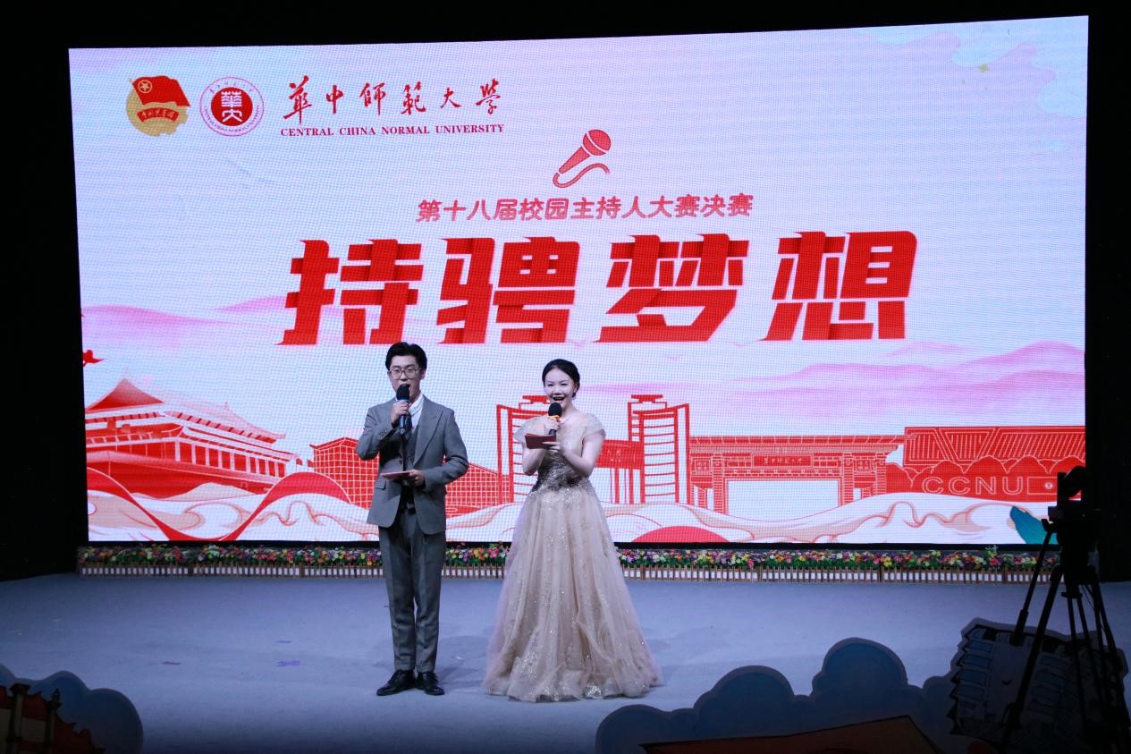 马克思主义学院讯(通讯员 黄天锡;摄影 石浩冉 皮久驰)为迎接党的二十大胜利召开、庆祝中国共产主义青年团建团一百周年、献礼华师双甲子校庆,5月8日晚,第十八届“‘持’骋梦想”校园主持人大赛决赛在九号楼演播厅举行。湖北广播电视台“湖北之声”主持人叶建恩,武汉大学传播学博士、总台央视节目青年代表刘瑀钒,四川电视台新闻记者卿爱玲、全国大学生樱花诗赛二等奖获得者担任评委。经过前期重重选拔,11位选手脱颖而出,并将在模拟节目主持、现场评述、模拟直播、采访等方面展开竞争。