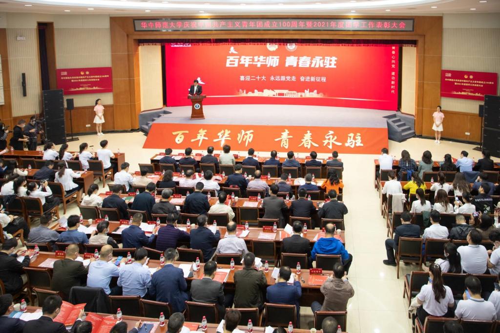 马克思主义学院讯(通讯员 团委学生会 摄影 项文慧)百年华师,青春永驻。5月11日,华中师范大学庆祝中国共产主义青年团成立100周年暨2021年度团学工作表彰大会在科学会堂一楼报告厅举行。全体校领导出席,学校各单位负责人以及受表彰的团学骨干和师生代表参加。大会由校党委副书记陈迪明主持。