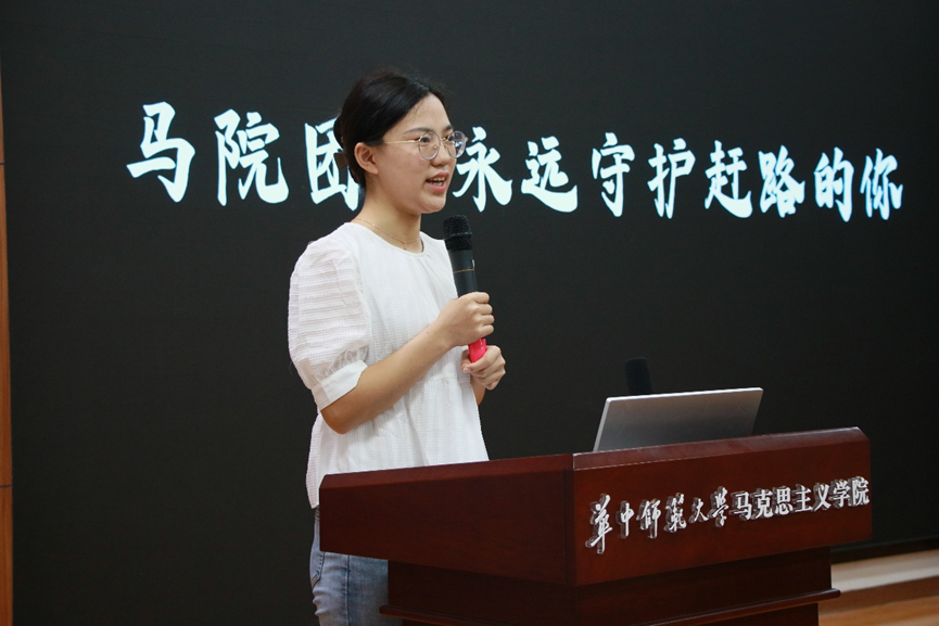 优秀部门代表维权与服务中心主任姚瑶在发言时提到,维权与服务中心在过去一学年的工作中始终秉持着“全心全意,事无巨细”的工作理念为马院师生服务,积极开展许多健康有益、丰富多彩的活动,丰富了马院师生的校园文化生活。