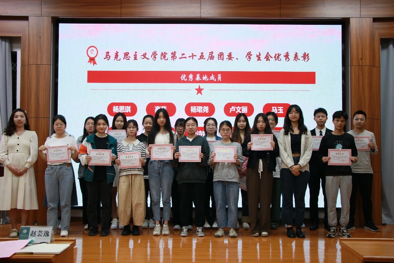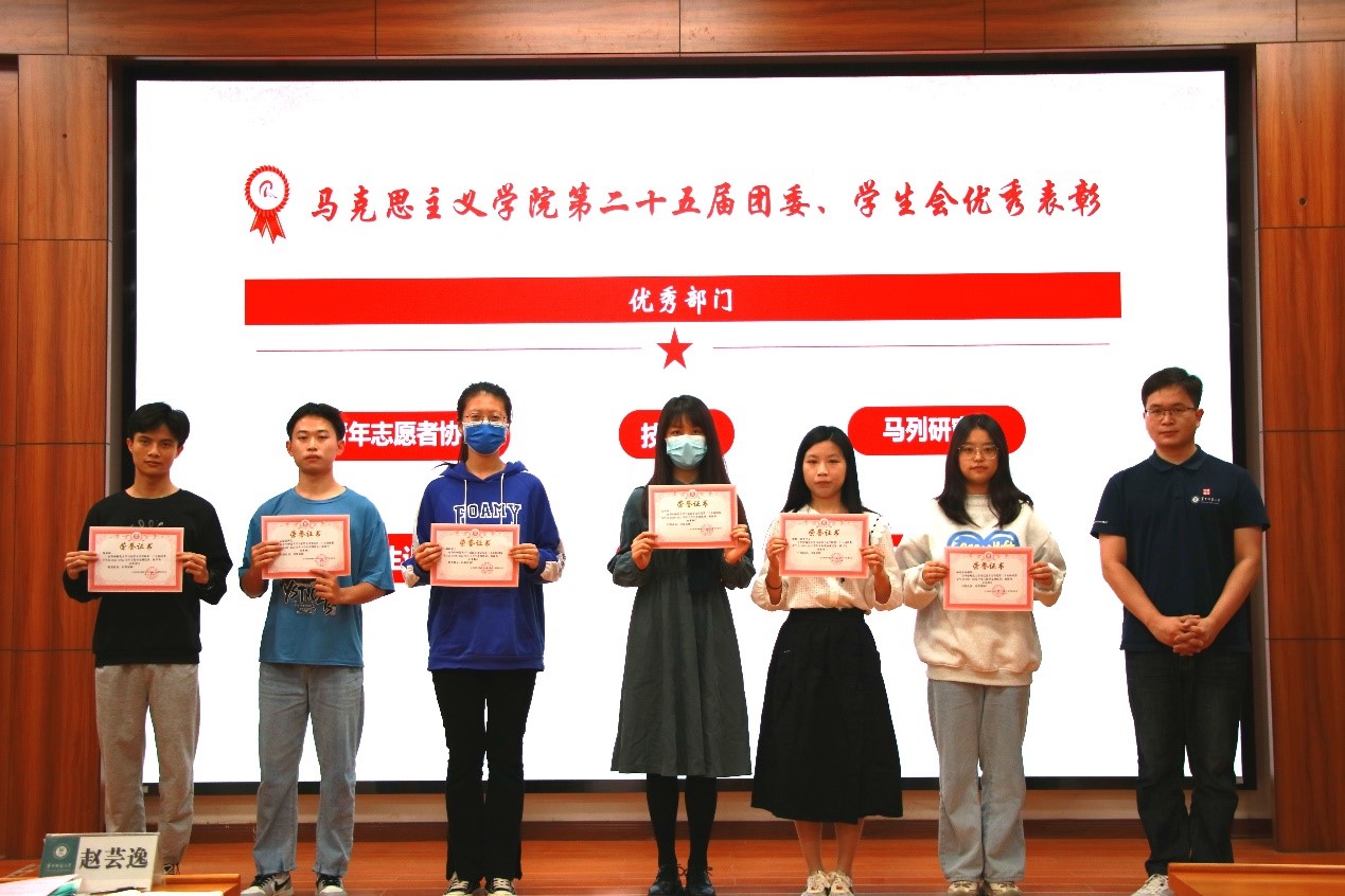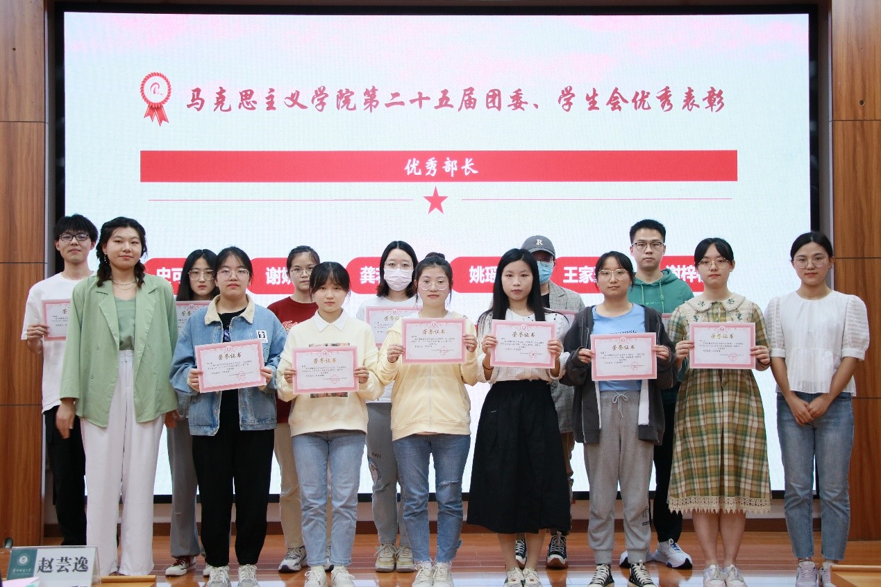 随后,赵芸逸宣读马克思主义学院第二十五届团委、学生会优秀部门、优秀部长及优秀基地成员名单并为其颁奖。