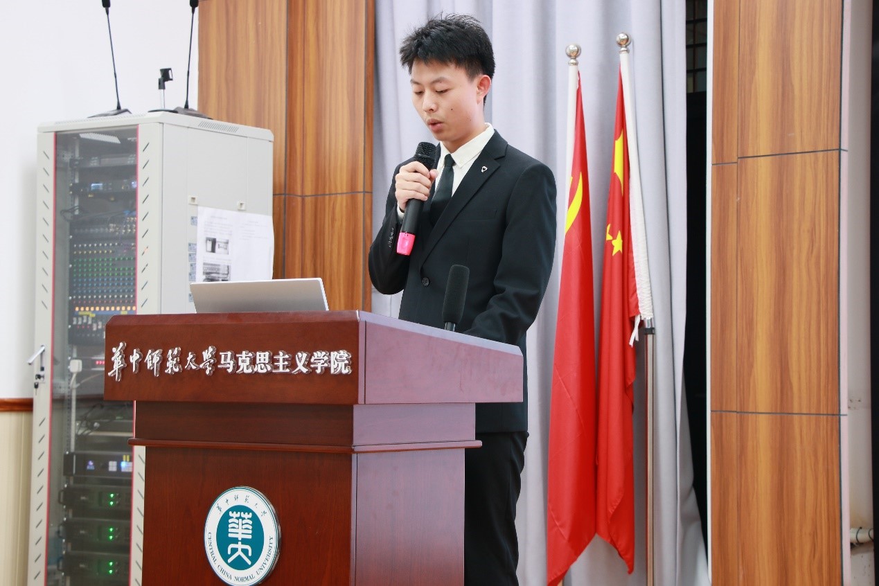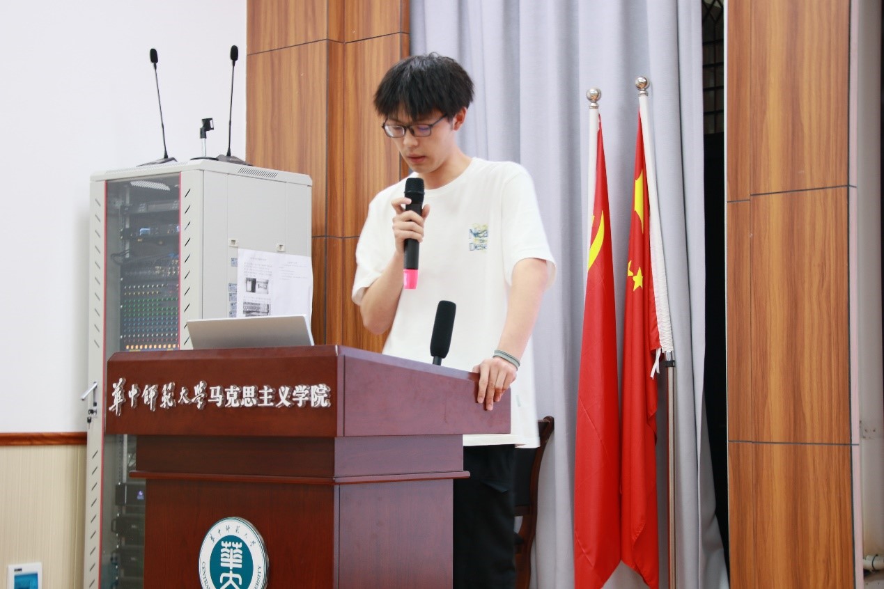 优秀部长代表王家豪从个人成长出发,回顾了过去当青年领航基地成员发言的经历,感叹马院团委、学生会的工作已经融入了他的生活。他鼓励基地成员们从团委、学生会的工作中收获成长,加强部门之间的交流,并从中感受到马院大家庭的温暖。