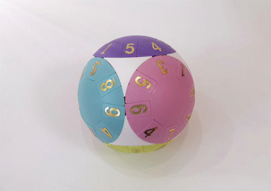 智慧球类似于魔方,由六个不同颜色的面组成。但不同于魔方的是,智慧球的每一面上都分布着标有数字1到8的滑块。借由滑动的数字变化,学生可以完成简单的四则运算。六个转盘的转动和八个滑块的滑动帮助孩子们构建二维和三维的空间模型,强化对几何图形的理解和空间思维的能力。
