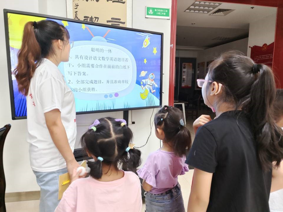在第三关“才智大比拼”中,志愿者老师设置了涉及语文、数学、英语各学科的灵活题目,以此充分调动同学们的知识储备来解决复杂问题。同学们发挥聪明才智,完成知识闯关,既巩固了所学知识,又体味了闯关乐趣,做到在学中有所乐,在乐中有所学。