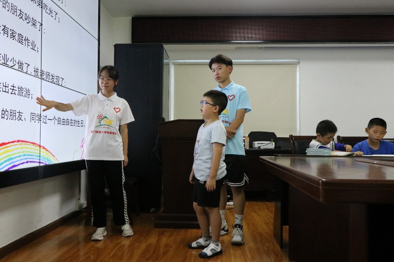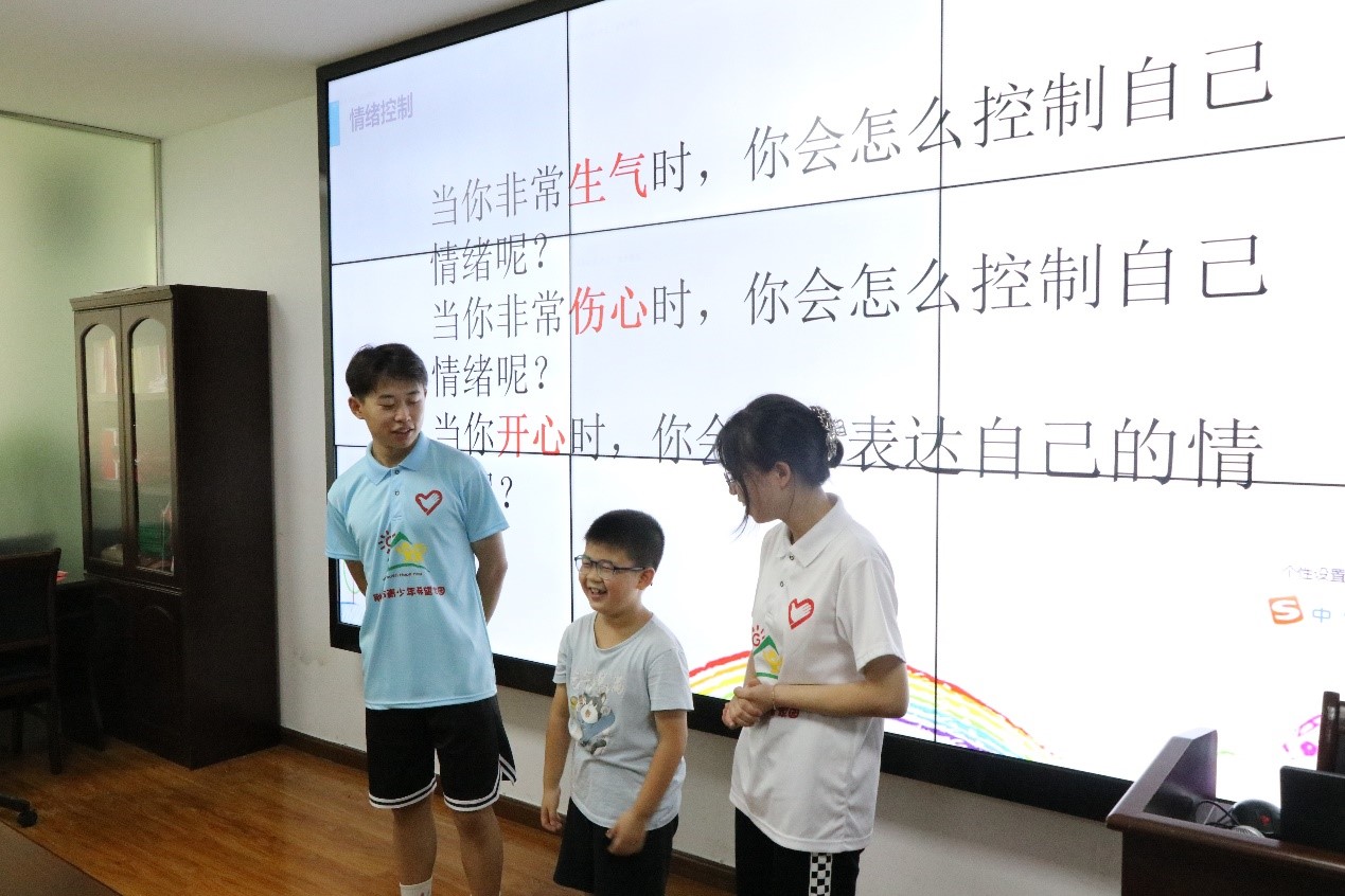 马克思主义学院讯(通讯员 刘佳芳 罗玉铉;摄影 彭帅)7月19日上午,由荆门市东宝区团区委和金龙泉社区联合举办的“希望家园”暑期班心理健康课程在金龙泉社区一楼会议室正式开课。本次课程围绕“做情绪的小主人”主题,由华中师范大学“青马红心”实践团成员罗玉铉、刘佳芳进行授课,并与同学进行课堂互动。