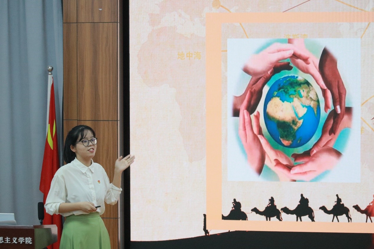 在主讲人评比活动中,张小凤以扎根大别山22年的华中师范大学杰出校友汪金权的日记为引,讲述了汪金权克服劳累、困苦等困难,坚守大山投身教育事业的故事,并向在场同学表达出她对“争做‘四有’好老师”的理解。程彩乐以“一带一路”相关视频引入,展现出“一带一路”所发挥出的对沿线国家经济、教育等多方面的促进作用。同时,她从“一带一路”对构建人类命运共同体的作用出发,阐释了其中蕴含的中国方案和中国智慧。