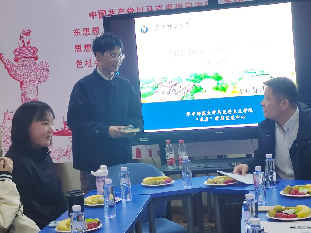 马克思主义学院讯(通讯员 曾艳)10月7日下午,马克思主义学院 “班导师下午茶”活动第二期在一号楼党员活动室顺利举行。本次活动采取线上线下相结合的模式,马克思主义学院毛华兵教授出席本次活动,马克思主义学院12位2022级本科生、硕士生和博士生积极参与其中。“求真”学习发展中心指导老师程金松主持本次活动。