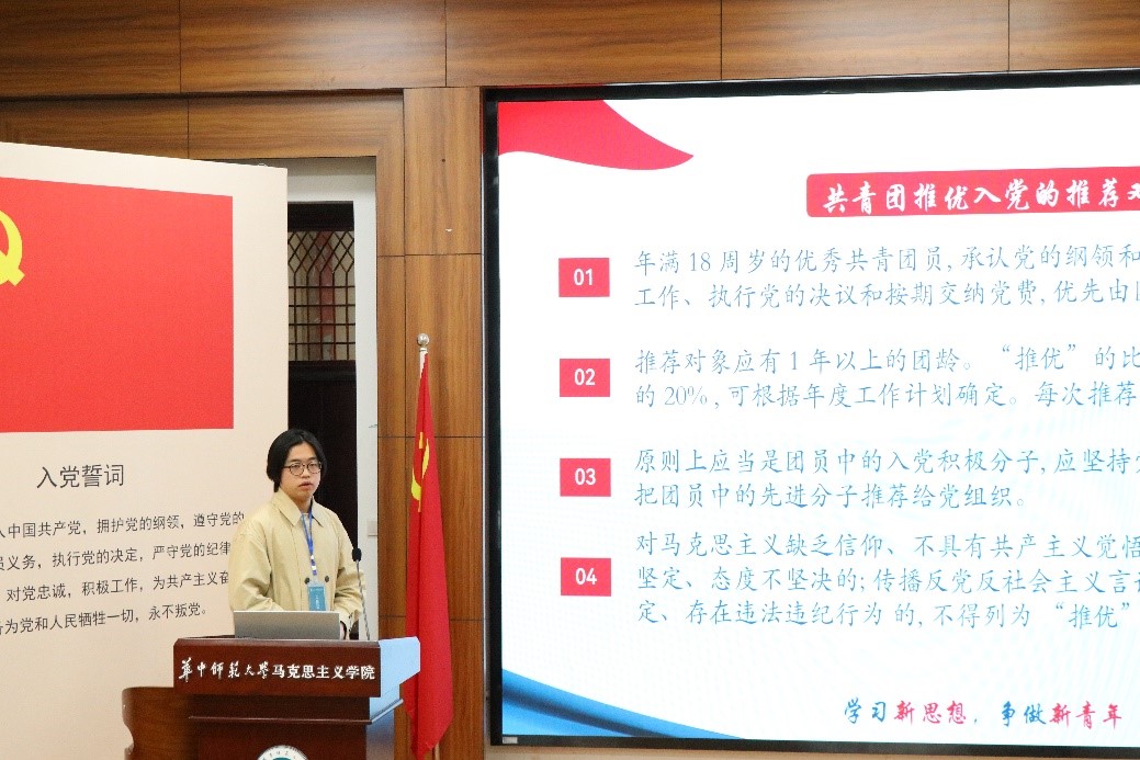 随后,组织部负责人刘晋玮对青年大学习评选方案进行讲解。他以五四表彰评比中优秀共青团干部、优秀共青团员、优秀团支部的评比要求为例,强调青年大学习学习率是多项评比中的重要指标,并具体说明了青年大学习先进个人、先进集体的评比要求及方式。除此之外,他建议各团支书通过收集截图的方式督促同学们完成青年大学习。