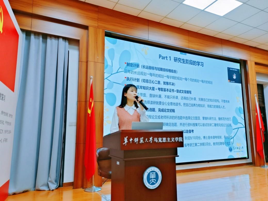 20级马克思主义中国化的曹珍学姐主要用到了学习科研方面的经验,分享了包括学年计划、论文写作和自身感悟等一批干货,详细地为同学们解答了“如何写文章”、“如何投文章”等问题。