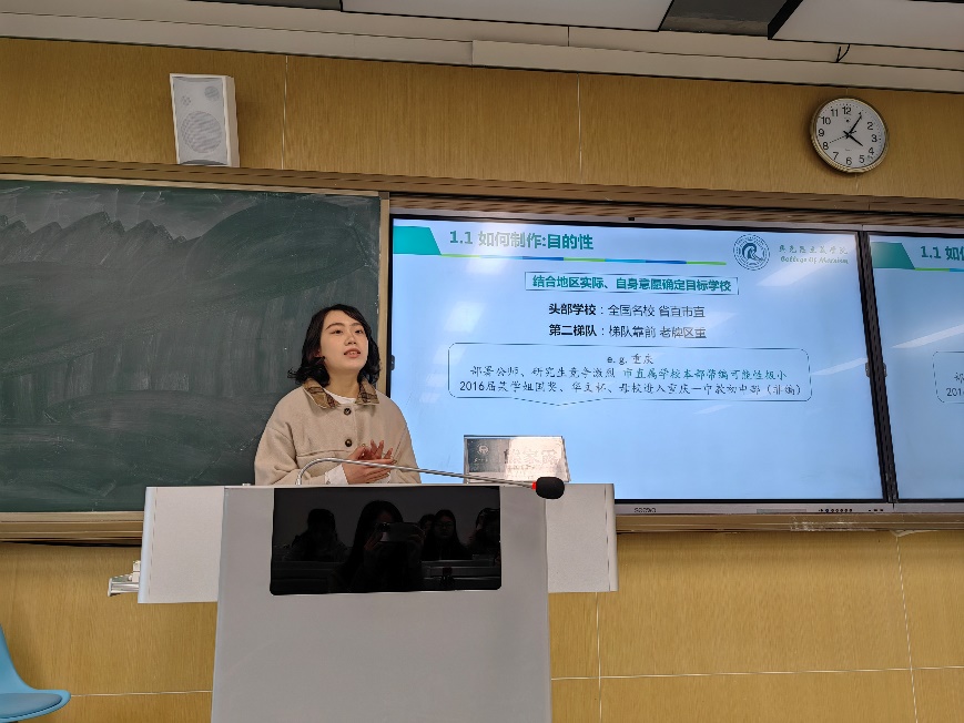 第一位分享者熊家露主要从如何制作和如何使用简历两方面进行讲述。在讲解如何制作简历时,她提出,求职简历要有明确的目的、鲜明的个性、突出的优势,应结合地区实际、自身意愿、个人优势等各方面对简历进行设计排版,从而实现扬其长处、避其不足。