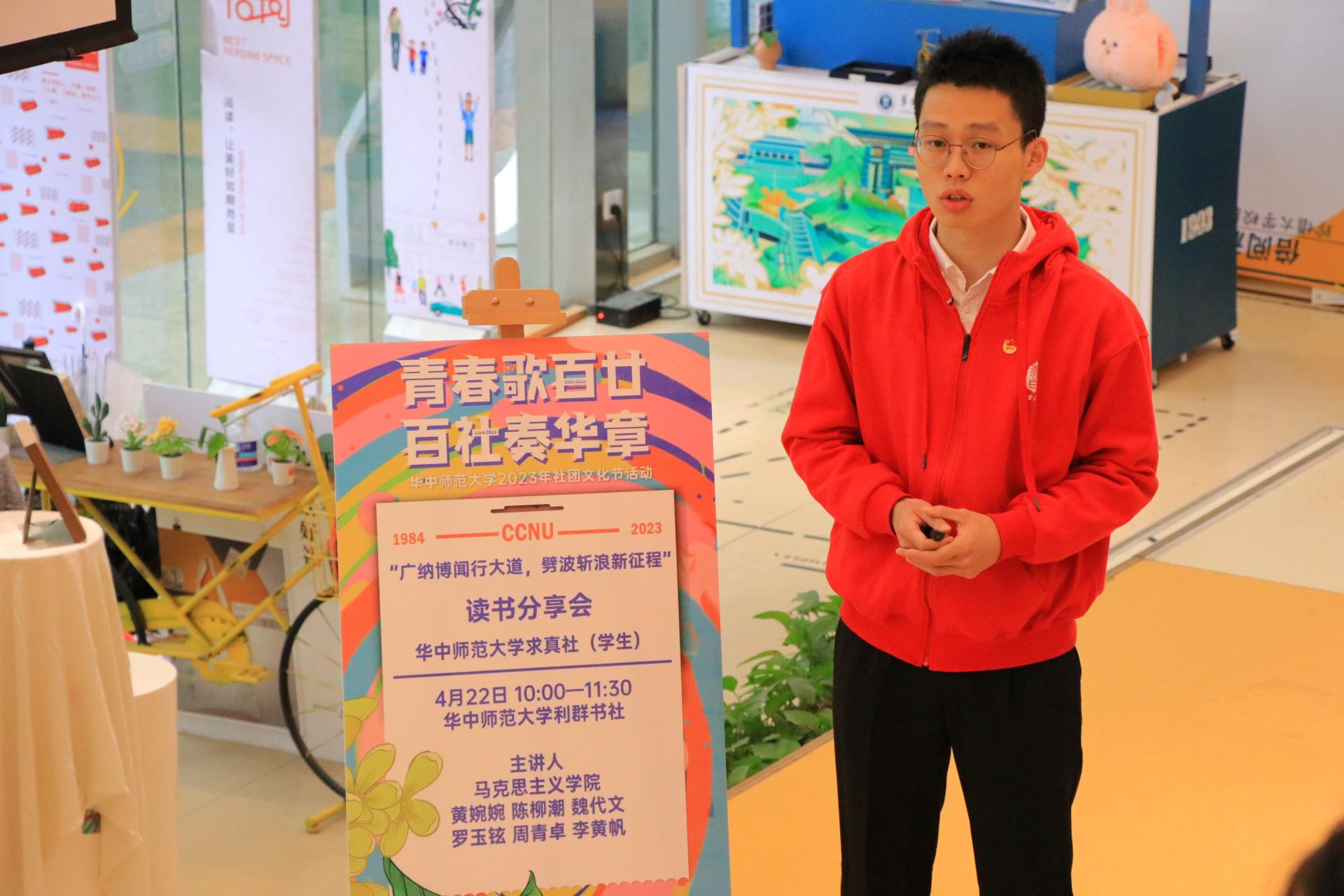 马克思主义学院讯(通讯员 李黄帆;摄影 易泽元)4月22日上午,马克思主义学院“广纳博闻行大道,劈波斩浪新征程”读书分享会在利群书社举办。马克思主义学院副教授孟飞作为嘉宾出席本次活动,马克思主义学院2021级硕士生陈柳潮,2022级硕士生黄婉婉、魏代文,2021级本科生罗玉铉,2022级本科生李黄帆、周青卓参与本次读书分享会。本次读书会由马克思主义学院团委、学生会青年发展中心举办,王欣雨任主持人。