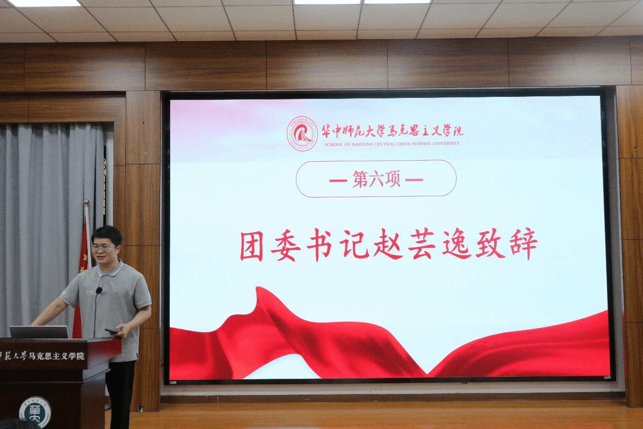 大会尾声,赵芸逸致辞。他对过去一学年来团委、学生会的工作表示肯定,并鼓励团学全体成员继续进行活动创新,探索改革,丰富马院全体学生的学习与生活。他表示每当这个时候既有快乐也有感伤,他很欣慰看到大家在这个大集体中有所收获、有所快乐、有所成就,但是对于离去也有不舍,希望大家一如既往地关心和支持团学工作,赵芸逸表示,学院会尽力提供力所能及的帮助,为整个马院同学提供更好的平台,助力每一位同学成就更好的自己。