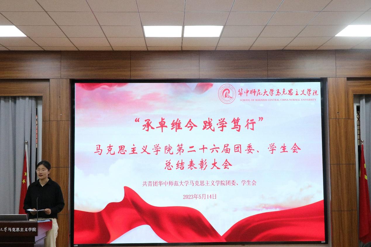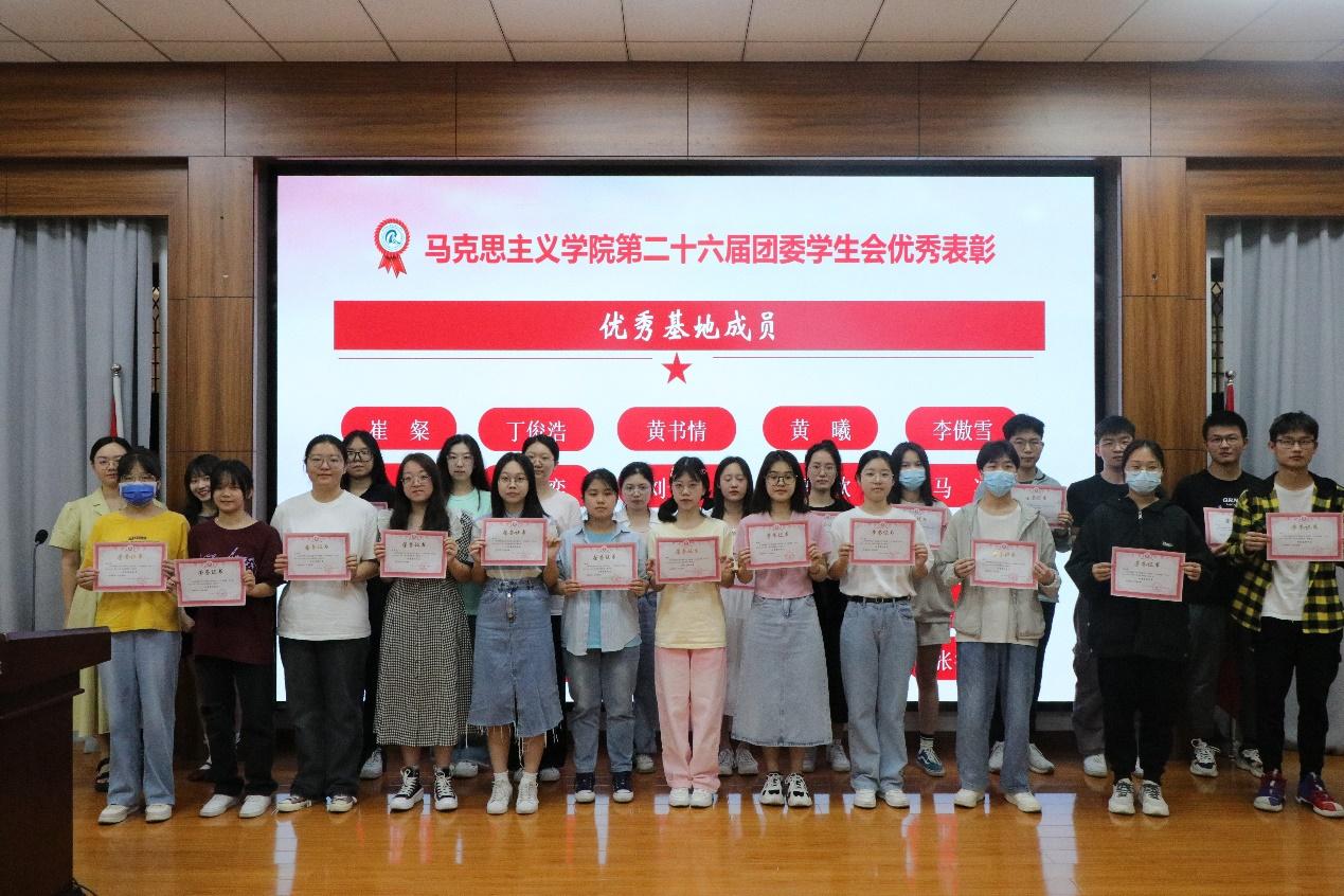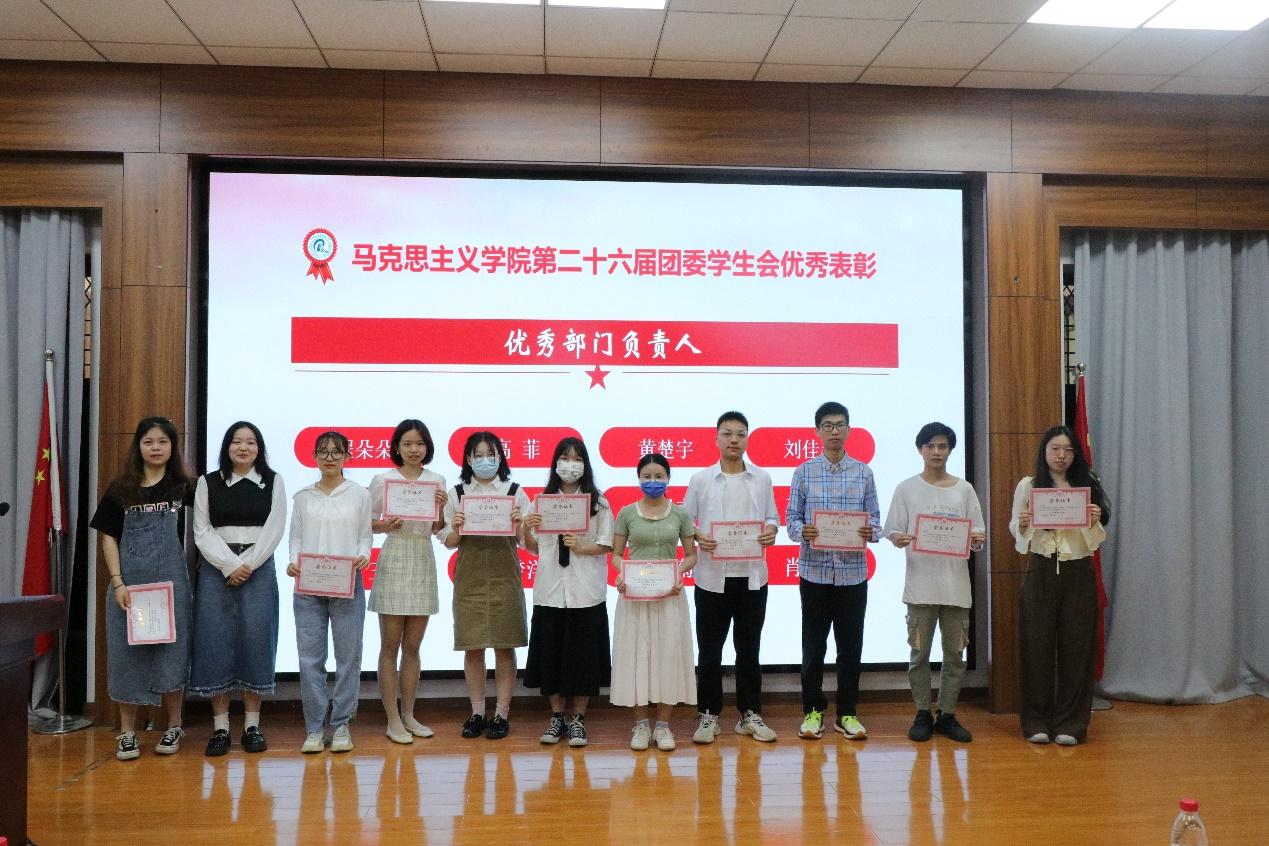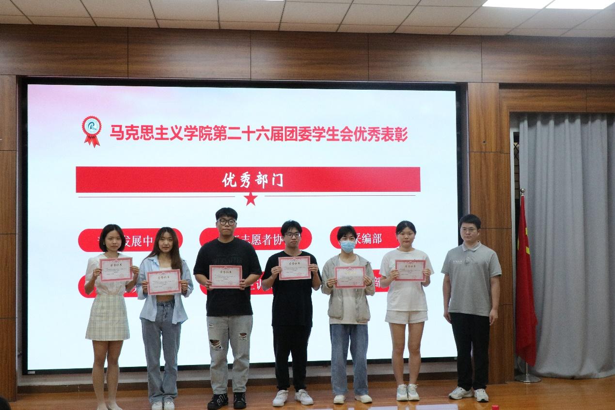 随后,赵芸逸宣读马克思主义学院第二十六届团委、学生会优秀部门、优秀部门负责人及优秀基地成员名单并为其颁奖。