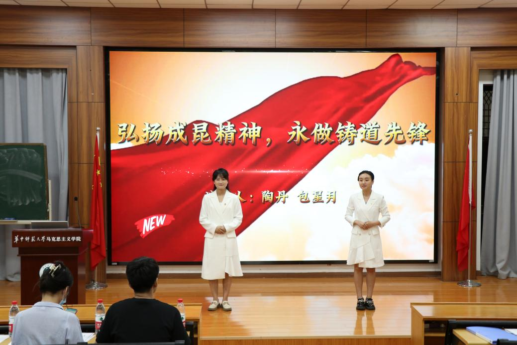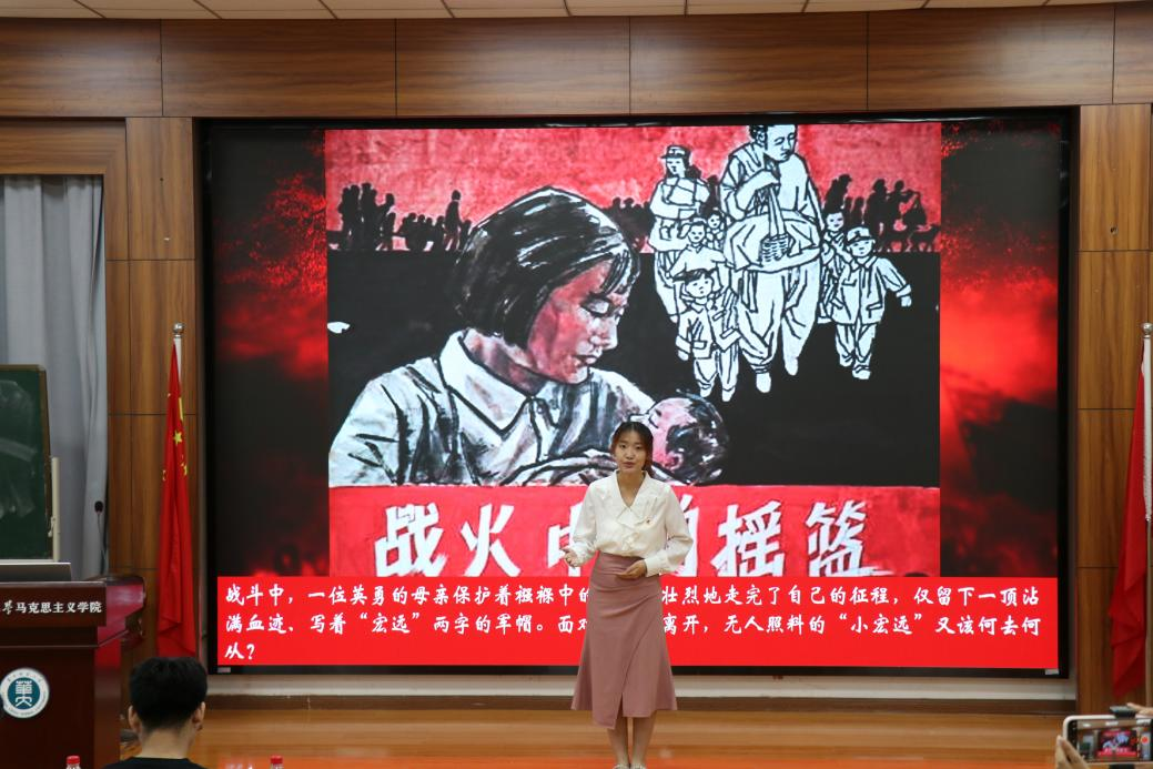 在主讲人评比活动中,陶丹、包星月以“传承好成昆精神”为主题,从“筑路”、“守路”、“新路”三方面描绘了一代代成昆人为建设成昆铁路而不懈奋斗的历程,并向在场同学表达出她们对“征途漫漫,惟有奋斗”的理解。王欣悦以“战火中的摇篮”为引,讲述了陕甘宁边区战火保育院与孤儿“小宏远”的感人故事。同时,她从自身经历出发,指出新时代的师范生应该要坚守“从人民中来到人民中去”的初心,在为祖国、为人民的“大我”实践中绽放绚丽的青春之花。