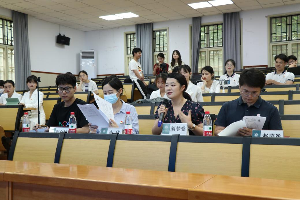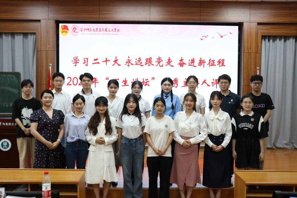 马克思主义学院讯(通讯员 易泽元;摄影 李文奕)6月3日下午,华中师范大学马克思主义学院“百生讲坛”优秀主讲人评选活动在一号楼1101教室举行。第六届全国高校青年教师教学竞赛全国决赛思政课专项组二等奖获奖者、湖北省2021年度“百生讲坛”微团课银牌获得者刘梦觉,马克思主义学院团委书记赵芸逸,团委副书记李欣,2021级本科生辅导员程金松出席活动并担任评委。青年发展中心负责人王梓桐主持本次活动。