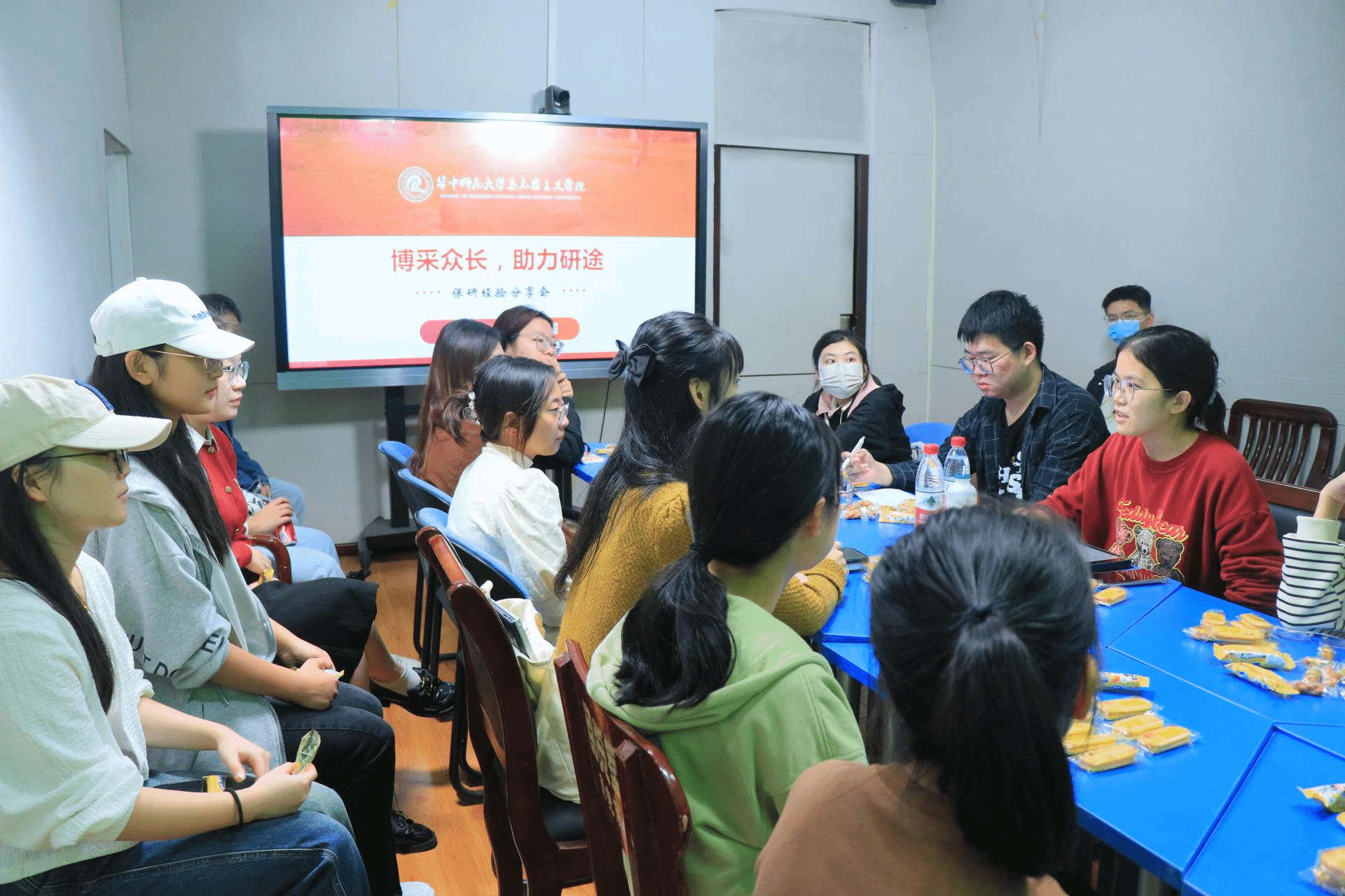马克思主义学院讯(通讯员 李黄帆;摄影 李黄帆)10月27日晚上,马克思主义学院恽代英班“博采众长 助力研途”研究生推免分享会在一号楼321教室举行,马克思主义学院2020级本科生王雪琦、袁铖作为分享嘉宾参与本次分享会。