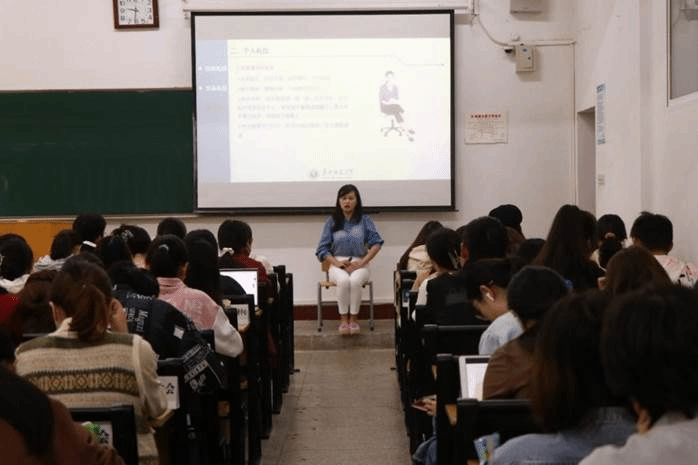 刘枫以“雅人深致,与礼同行”为主题开始团学礼仪培训会。她将礼仪培训分为服务原则、个人礼仪、社交礼仪、会务礼仪、交通礼仪、突发事项六大维度,分别展开讲述。对于服务原则,刘枫强调要坚守充分准备、热情周到、严密组织、讲究礼仪、确保安全、厉行节约的原则。讲授个人礼仪的内容时,刘枫分别提及仪容、仪表、仪态礼仪,仪容礼仪强调精神饱满、态度和蔼端庄、妆容清淡干净;仪表礼仪注重着装得体;讲授仪态礼仪时,她亲自展示坐姿要求,使同学们对礼仪培训印象深刻。