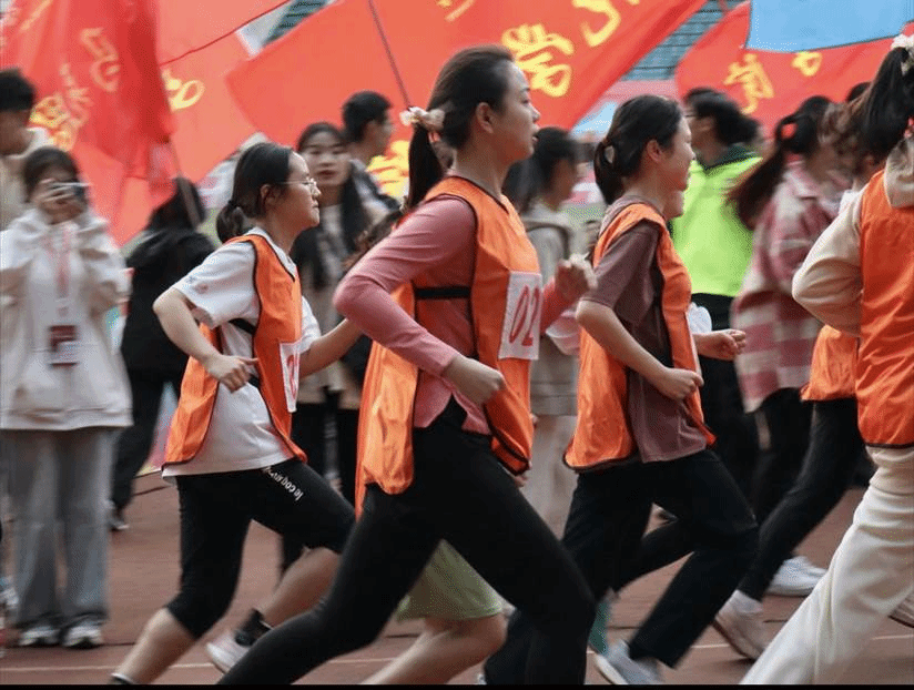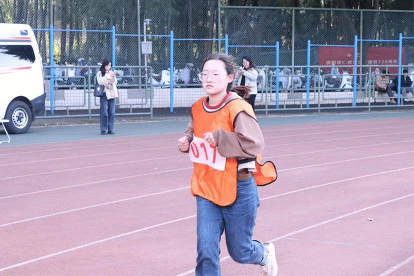 在清凉的初冬,在喧嚣的田径场上,马院的三千米长跑运动员们以勇气为帆,以毅力作舟,在三千米的路途中为我们诠释了坚持不懈的意义。马院2023级女子三千米运动员王鹤芳在接受采访时表示:“三千米长跑对我来说是一场身体与意志的较量,在漫长的跑道上,每一步都是对坚持的承诺,每一次呼吸都是对挑战的回应。在比赛中,学院的同学们为我加油打气,让我非常感动,一声声‘马院!加油!’支撑着我完成了比赛。这次比赛我又刷新了自己的最好成绩,让我更加相信坚持到底就是胜利!”马院陪跑志愿者王媛媛在谈及自己陪跑的感受时说道:“我认为陪跑是我院团结与和谐的象征。陪跑过程是十分有激情的,运动员在赛场拼搏,我们也举着院旗奋力追赶。看到运动员们坚持不懈的样子我非常感动,希望明年能继续参与陪跑的活动。”