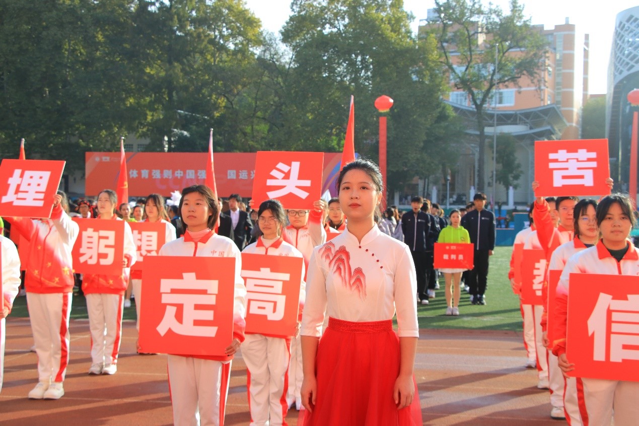 开幕式上,马克思主义学院方阵队师生统一服装,手持红旗和字牌,口喊“学思践悟二十大,百甘风华谱新篇”的嘹亮口号,迈着整齐的步伐入场,以饱满的热情和昂扬的姿态迎接校运会的到来。