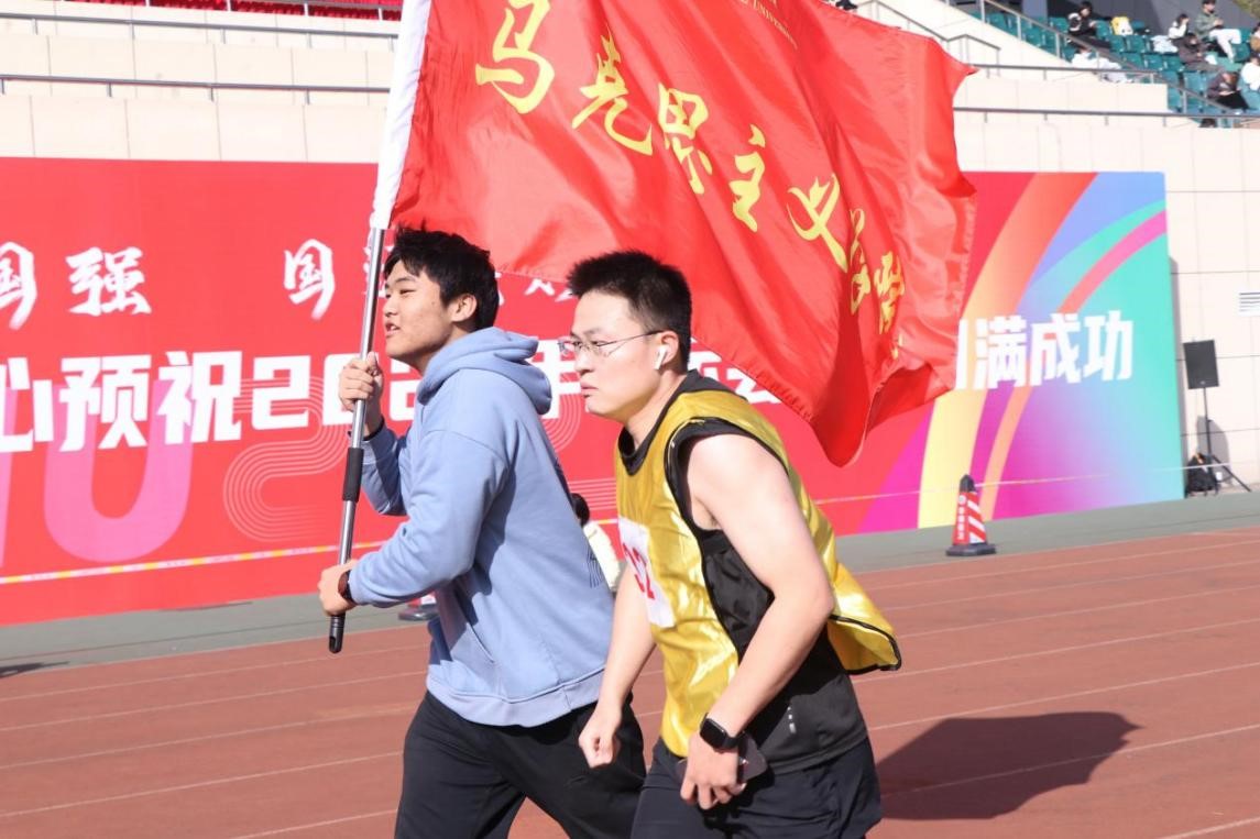 陪跑志愿者挥舞着院旗一圈又一圈地无言陪伴,随着他们一齐冲过终点线,取得荣誉,观众一声声加油呐喊紧跟如雷的鼓点,代表着全体马院人的支持,激励着运动员们不断拼搏,奋勇争先。