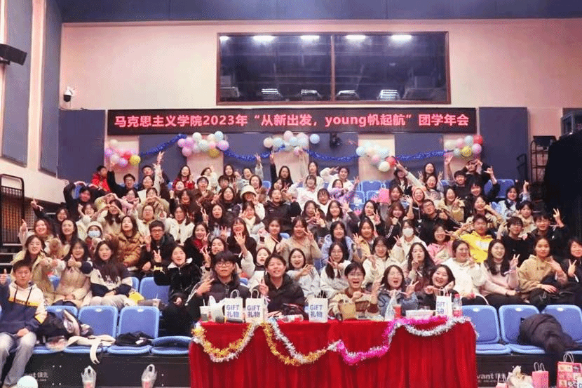 马克思主义学院讯(通讯员 李语菲;摄影 邓潇潇)12月24日晚,华中师范大学马克思主义学院2023年团委、学生会"从新出发,young帆起航"年会于九号楼6楼演播厅举办。本次活动由马院团委、学生会主办,文艺部承办。活动由团学成员张书萌和惠军锴担任主持人。