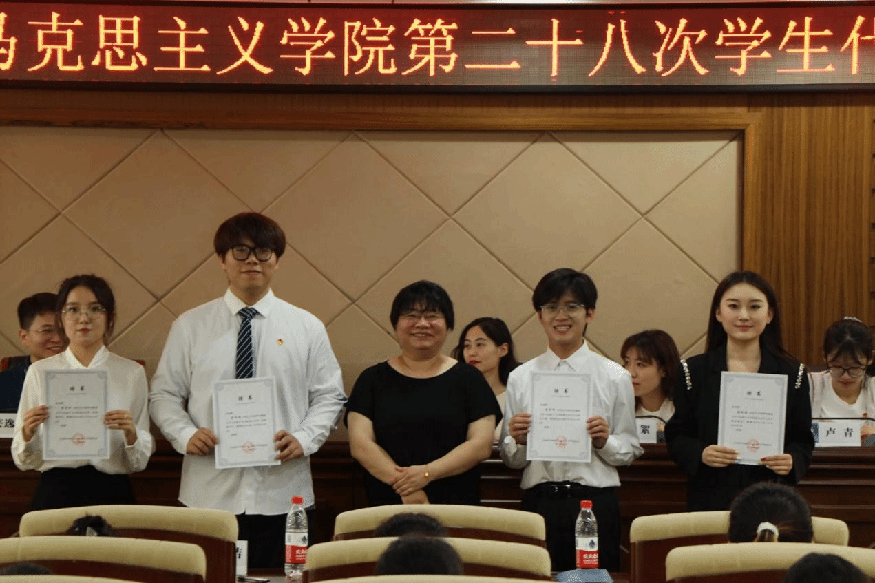 随后,与会嘉宾为马克思主义学院第二十七届团委、学生会学生干部颁发聘书。