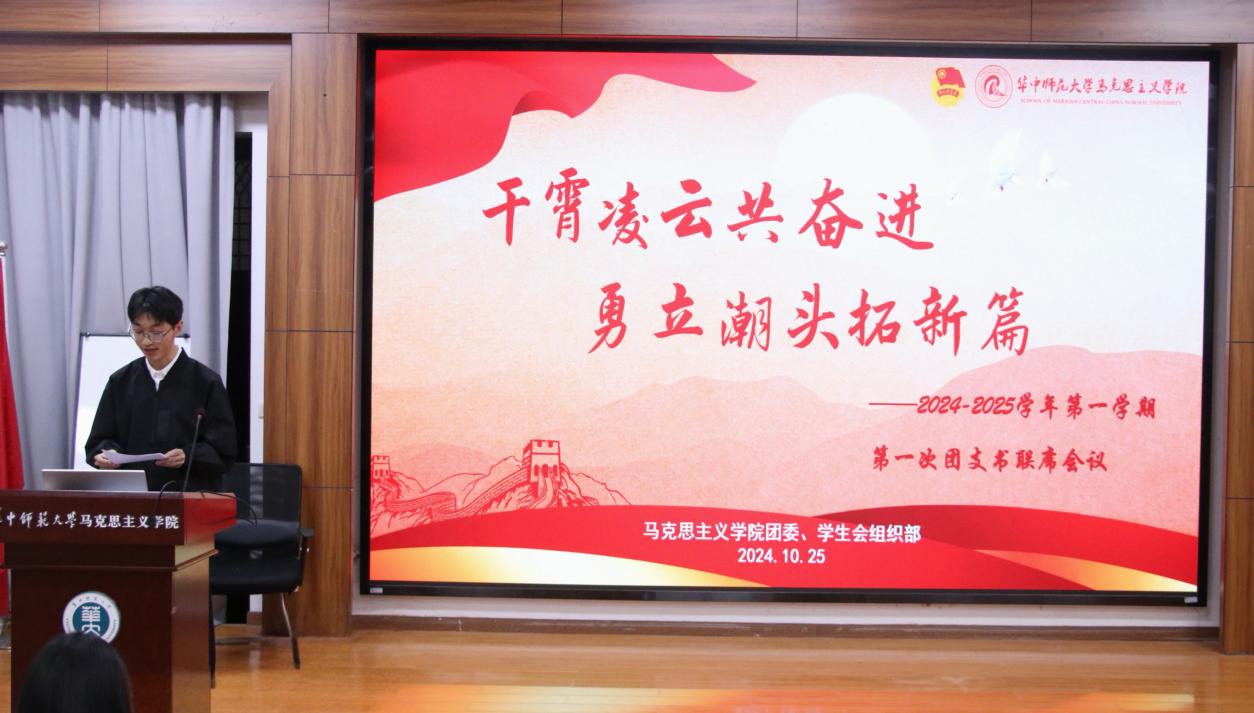 马克思主义学院讯(通讯员 冯代昕;摄影 王冰洁)10月25日中午,马克思主义学院2024—2025学年第一学期第一次团支书联席会议在一号楼1101教室举行。本次会议由马克思主义学院团委、学生会组织部主办,马克思主义学院团委、学生会组织部全体成员和各团支部负责人出席本次会议,组织部成员郑文彬主持本次会议。
