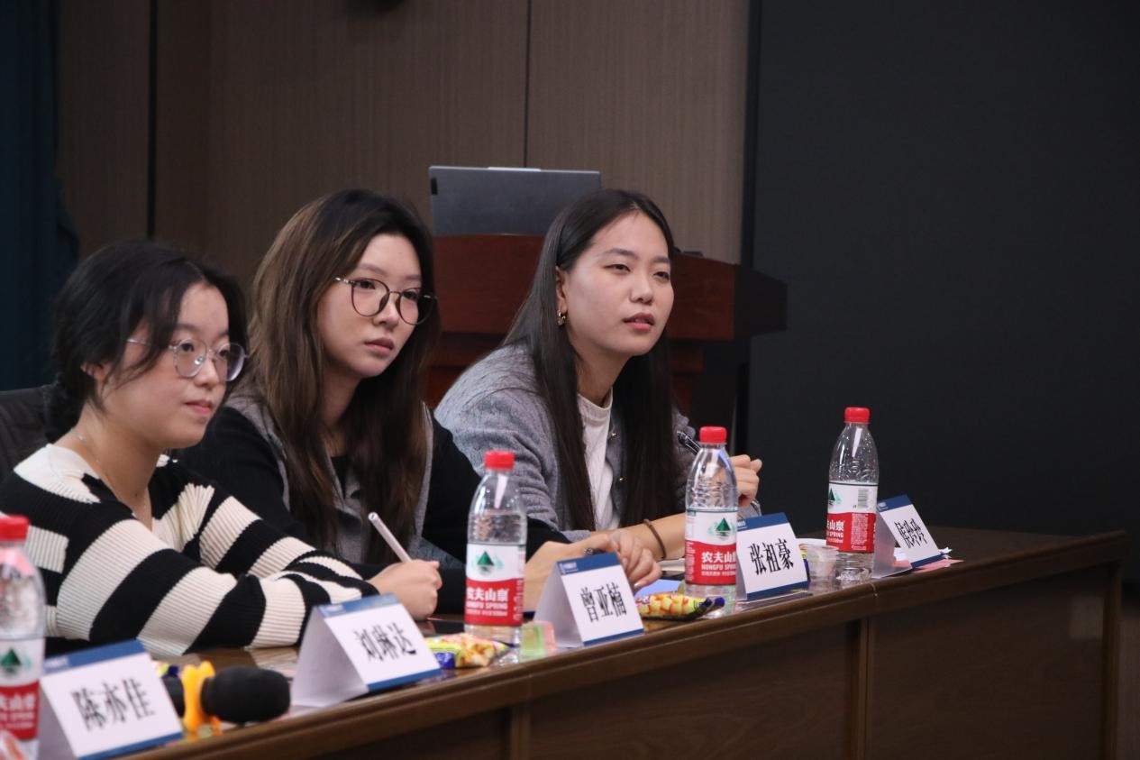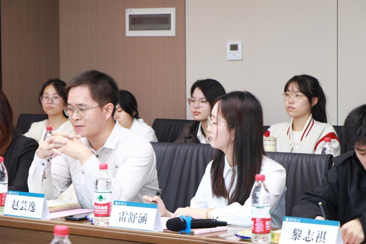 随后,华中师范大学马克思主义学院第二团委副书记雷舒涵与中国地质大学(武汉)马克思主义学院本科生主席团成员陈亦佳先后就各自学院的志愿服务活动开展情况进行了细致说明。其中,雷舒涵表示,地大马院青协在志愿服务领域有着丰富的经验和独特的优势,我院青协非常期待借此机会深入了解贵校马院青协的工作模式和创新做法,共同探讨青协建设的更多可能。雷舒涵和陈亦佳的介绍加深了两校参会同学对彼此工作的了解,增进了两校友谊。