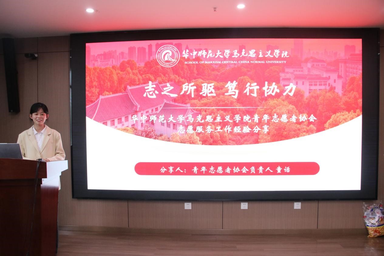 华中师范大学马克思主义学院优秀志愿服务团队——知·行·园志愿服务团队队长杨黎、第七届湖北省青年志愿公益项目大赛金奖团队成员许冉与中国地质大学(武汉)马克思主义学院优秀志愿服务个人侯玲玲先后就志愿者管理、活动主题创新等方面进行志愿服务经验分享。