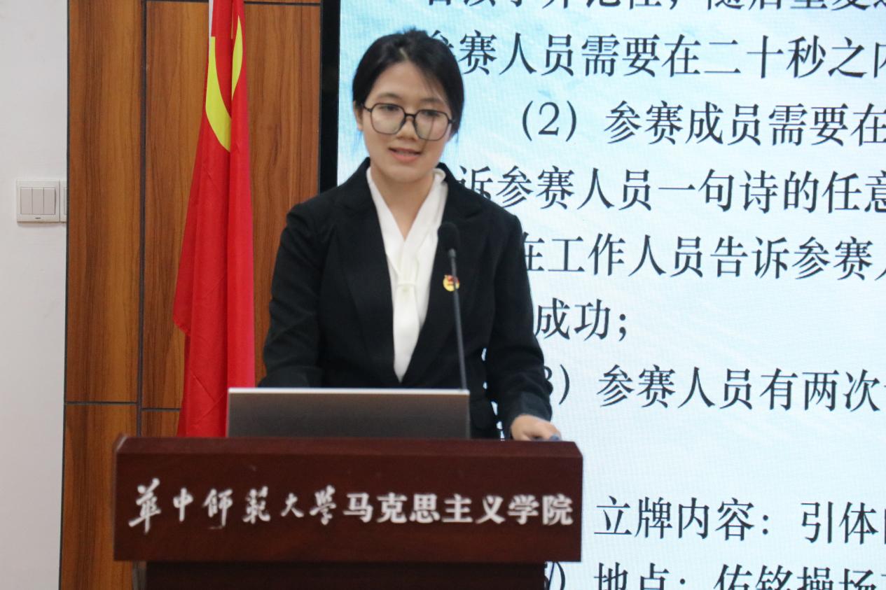 会议伊始,马院团委、学生会全体成员共唱中国共产主义青年团团歌,随后主持人余飞飞介绍小组汇报规则与评分标准。此次结业典礼以汇报和答辩的形式展开,十个部门分别从活动概述、活动过程、活动总结等方面对活动策划案进行汇报。